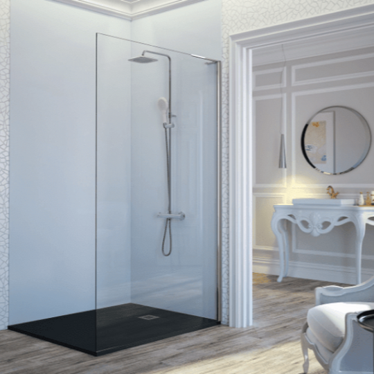 Panel fijo de ducha FRESH LEVANTE negro - cristal 8mm - Entorno Baño | Cristal serigrafiado_miniature