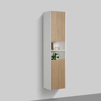 Este armario columna suspendido de gran tamaño tiene dos grandes puertas que se abren para dejar cuatro espacios interiores. Fabricación de calidad, aglomerado con revestimiento en fibra de madera.