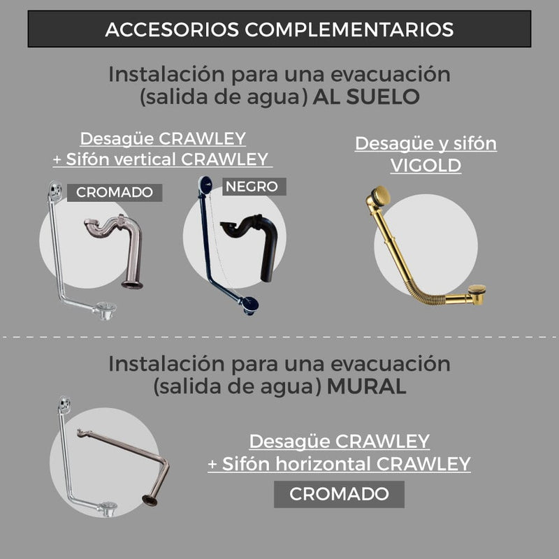 • Patas de águila o de león en acabado: Cromado, Dorado, Blanco, Negro, Cobre o Bronce envejecido.