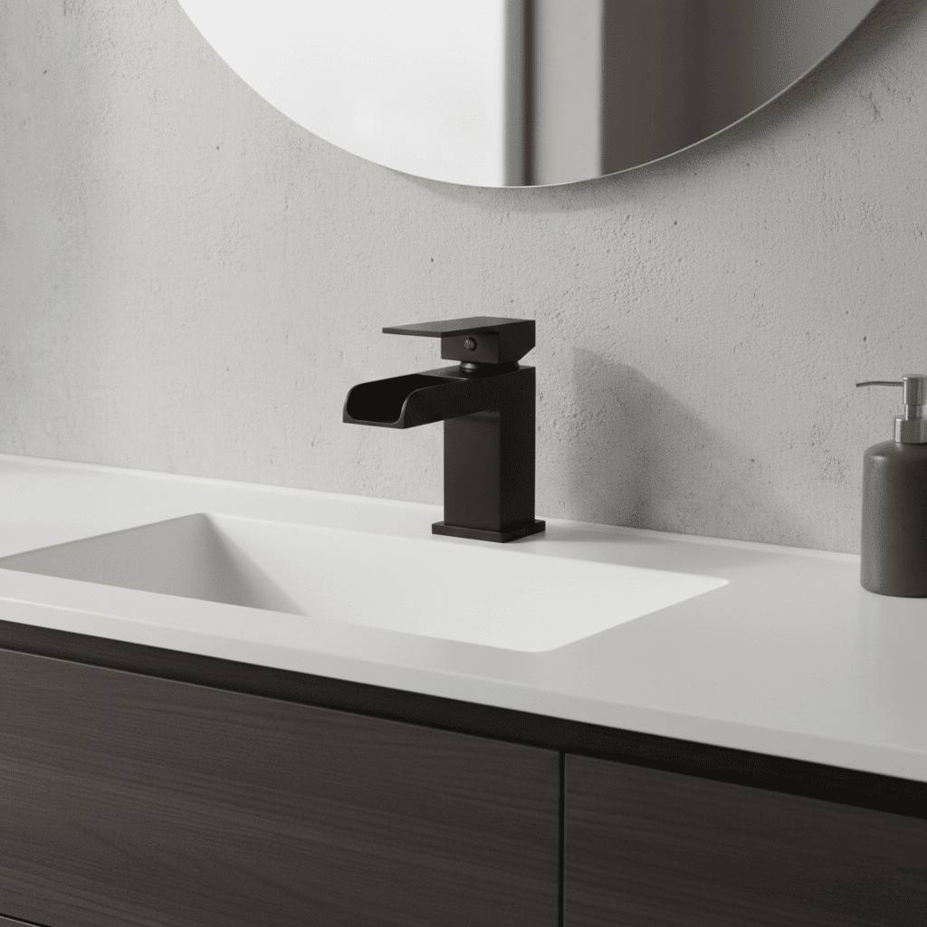 Grifo monomando para lavabo cascada TANO negro mate. Para cuartos de baño modernos y con estilo.
