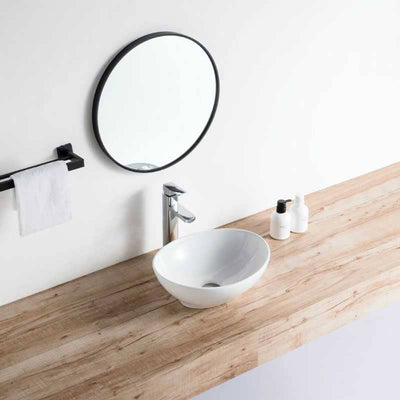 Lavabo negro mate borde dorado sobre encimera cerámico MENDOZA Ø 36 cm - Entorno baño