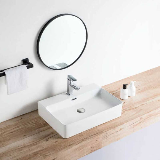 Lavabo blanco brillo sobre encimera cerámico ESTERO 60 x 42,5 cm - Entorno baño