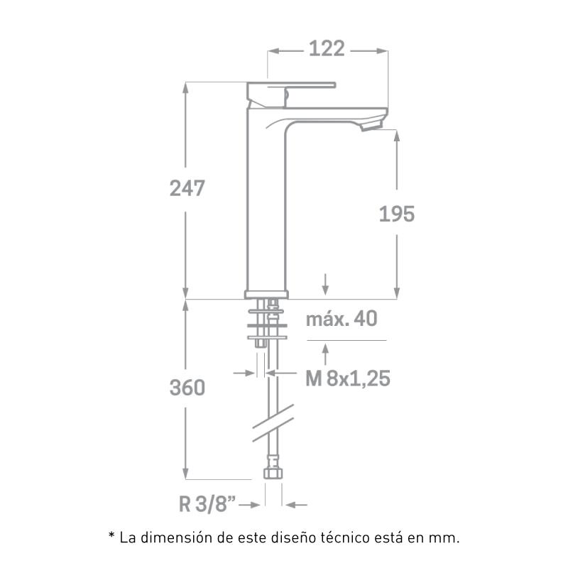 Grifo lavabo alto PORI negro mate para lavabos sobre encimera