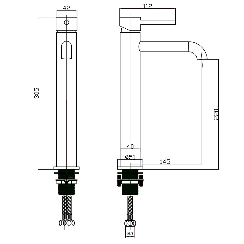 Fabricación de alta calidad, en latón macizo y acabado en negro mate. Manilla de aleación acabado en negro mate. Cartucho de marca TRIDUON® 35mm. Aireador de la marca suiza NEOPERL®.