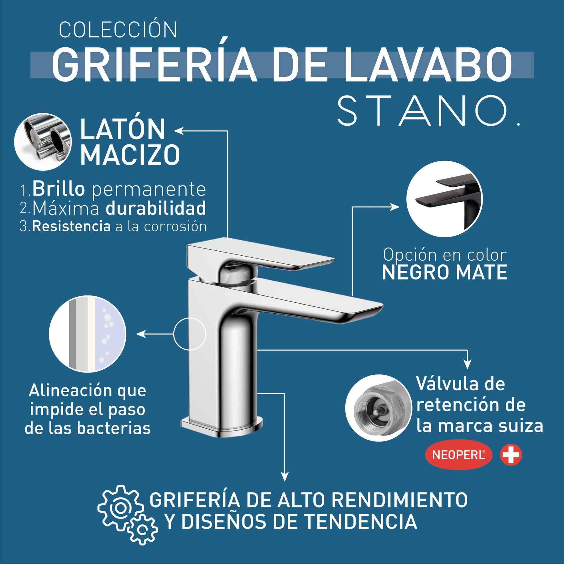 Grifo monomoando para lavabo PICO negro mate de la marca STANO para lavabo de estilo moderno y para un cuarto de baño de diseño.