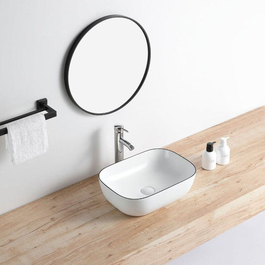 Lavabo blanco brillante borde negro sobre encimera cerámico CUARTO 45,5 x 32,5 cm
