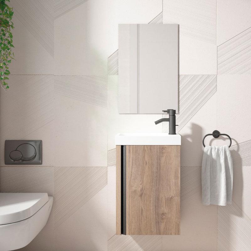 Conjunto LAGOS lavamanos suspendido+espejo esta compuesto por 3 elementos: lavamanos, lavabo y espejo. Mezcla perfecta entre delicadeza y robustez. Mueble ideal para espacios reducidos.