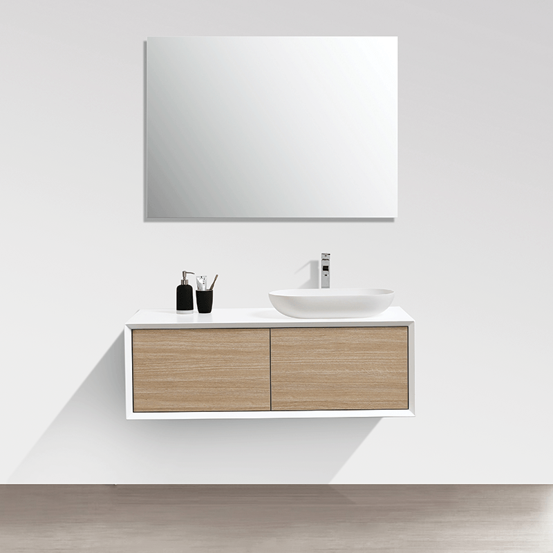 - Mueble de baño de alta gama premontado en taller para una instalación simple y rápida