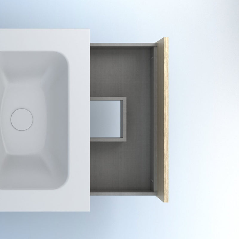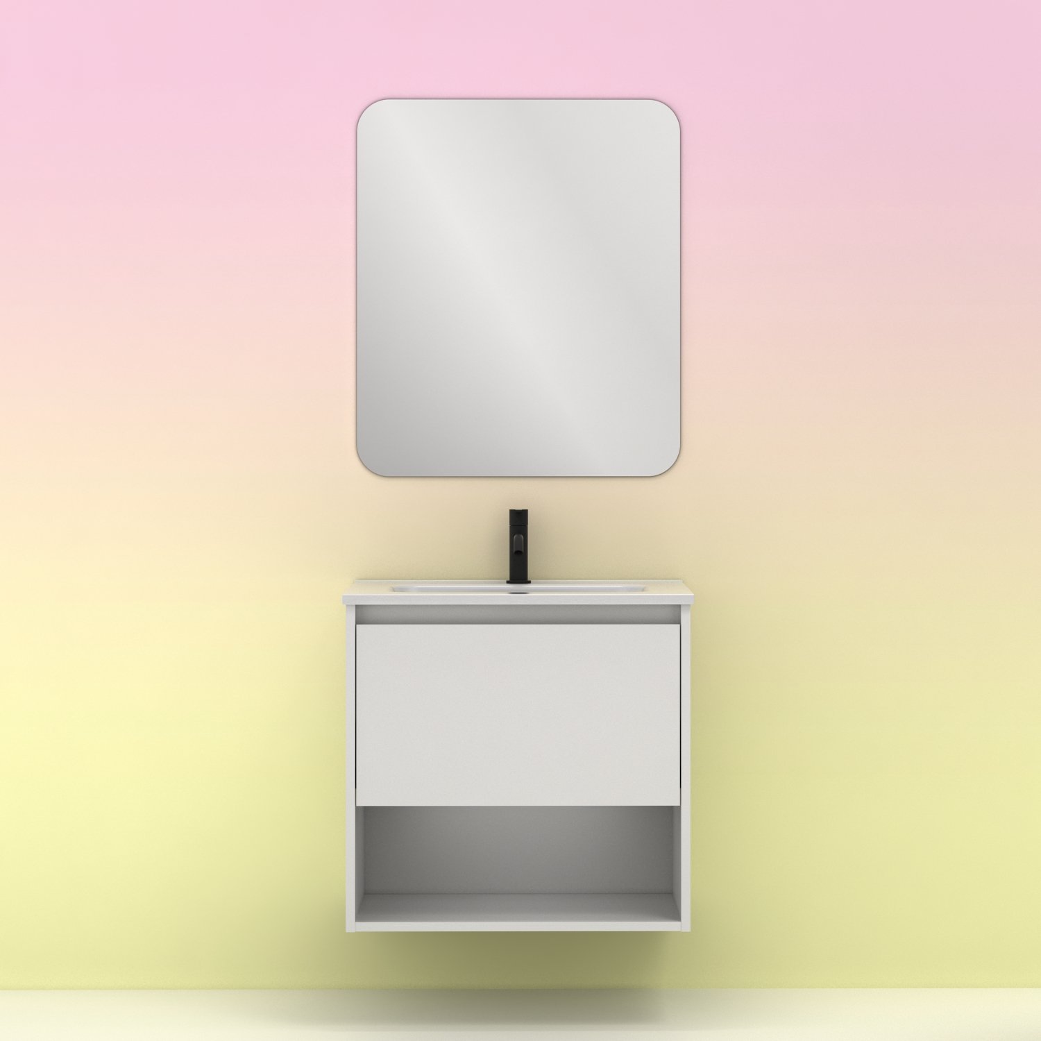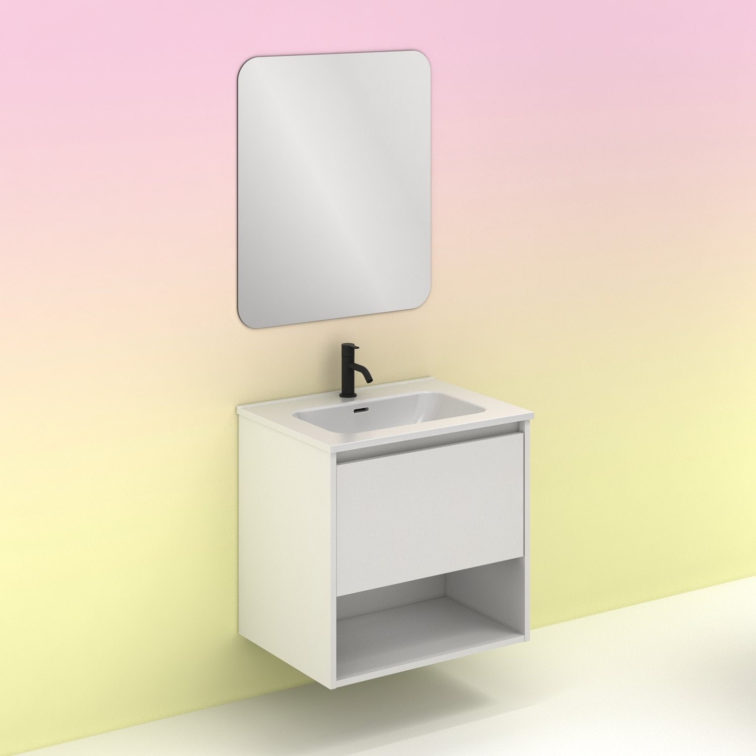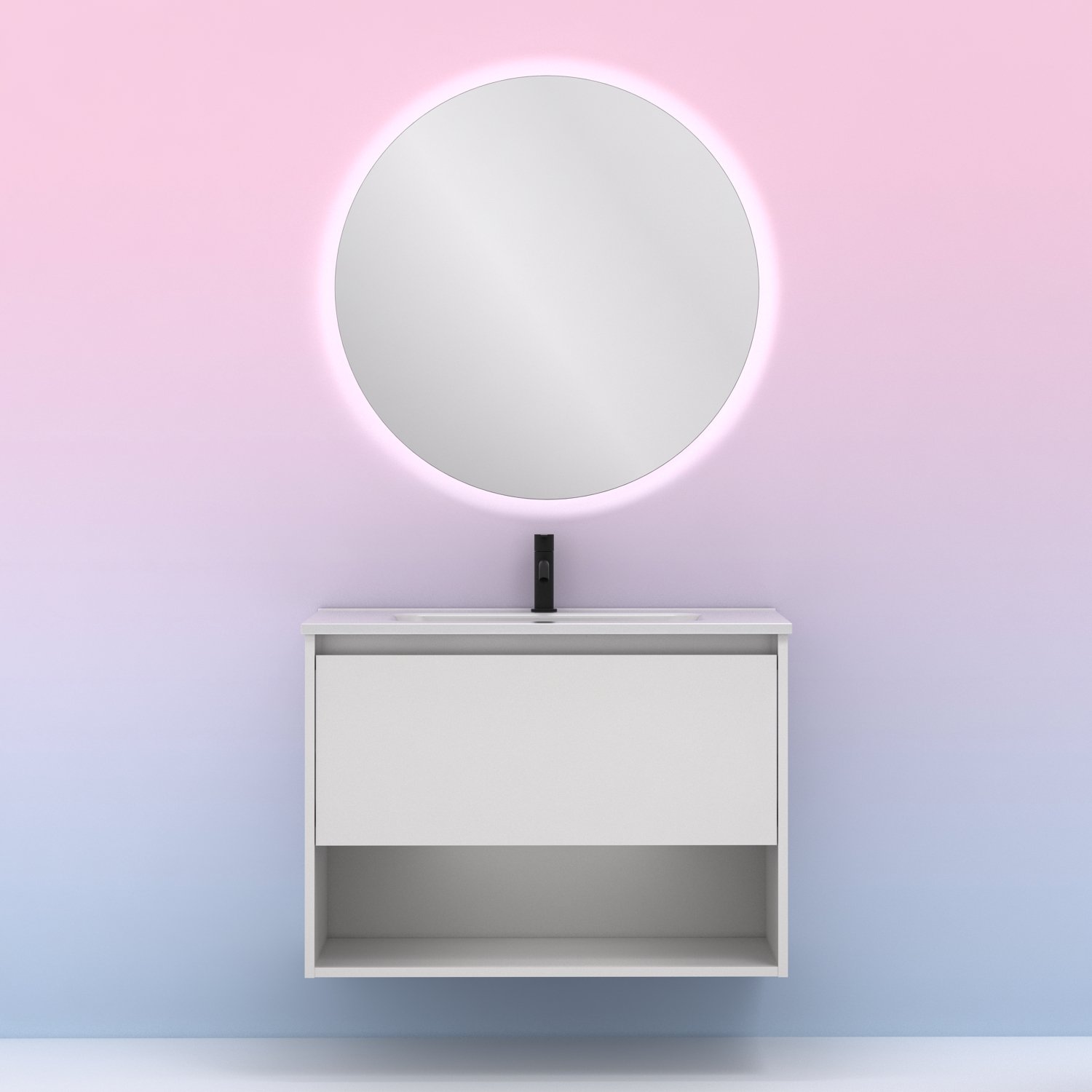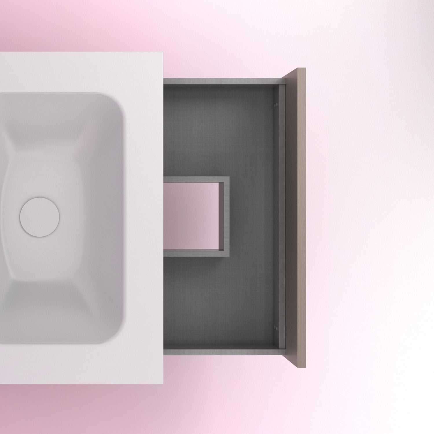 - Fabricación: Realizado en tablero de 16mm lacado blanco alto brillo, el interior de los cajones del mueble NIWA esta realizado en una textura gris textil, las guías incorporan cierre amortiguado y otorgan accesibilidad total al interior del cajón. Tirador integrado