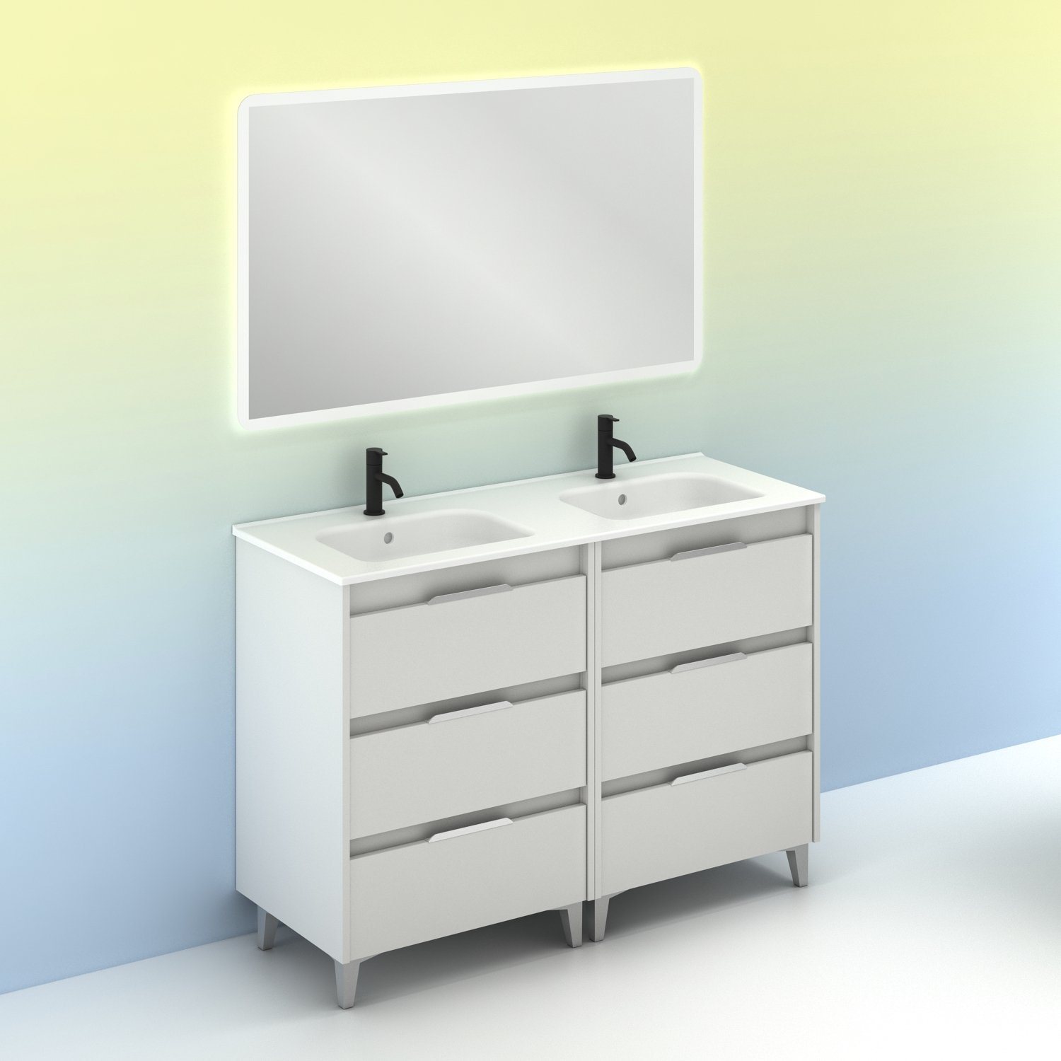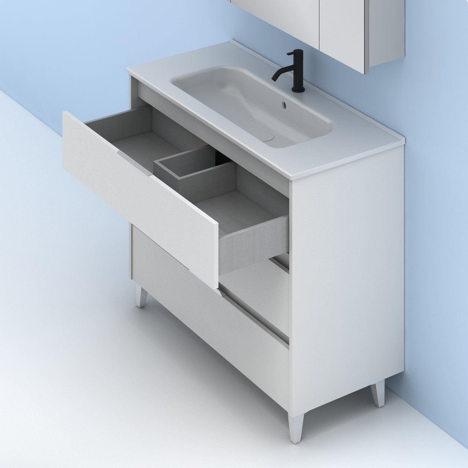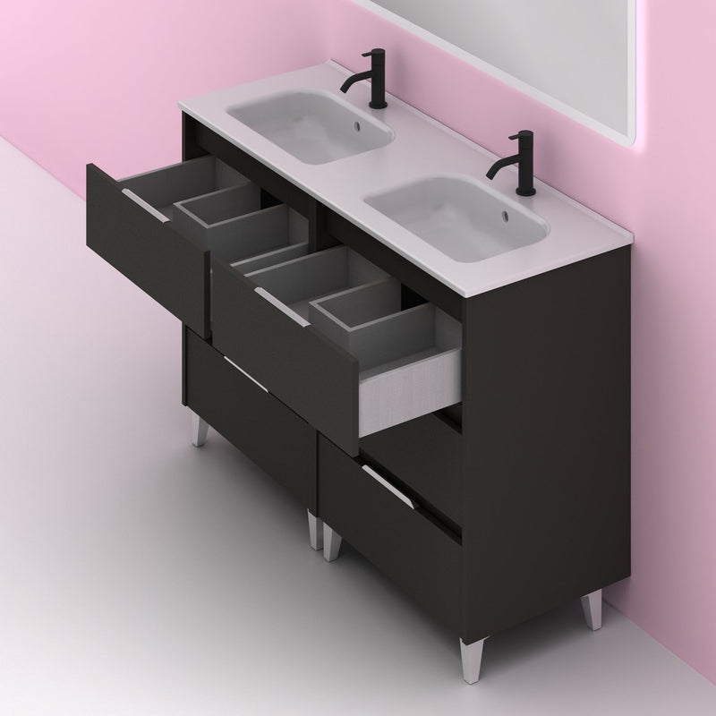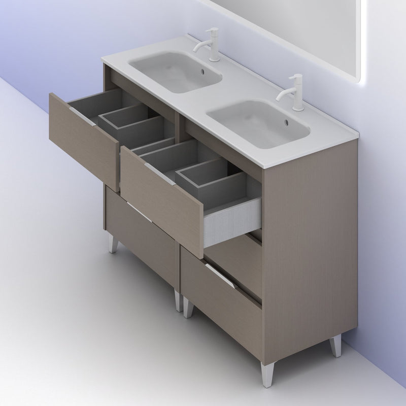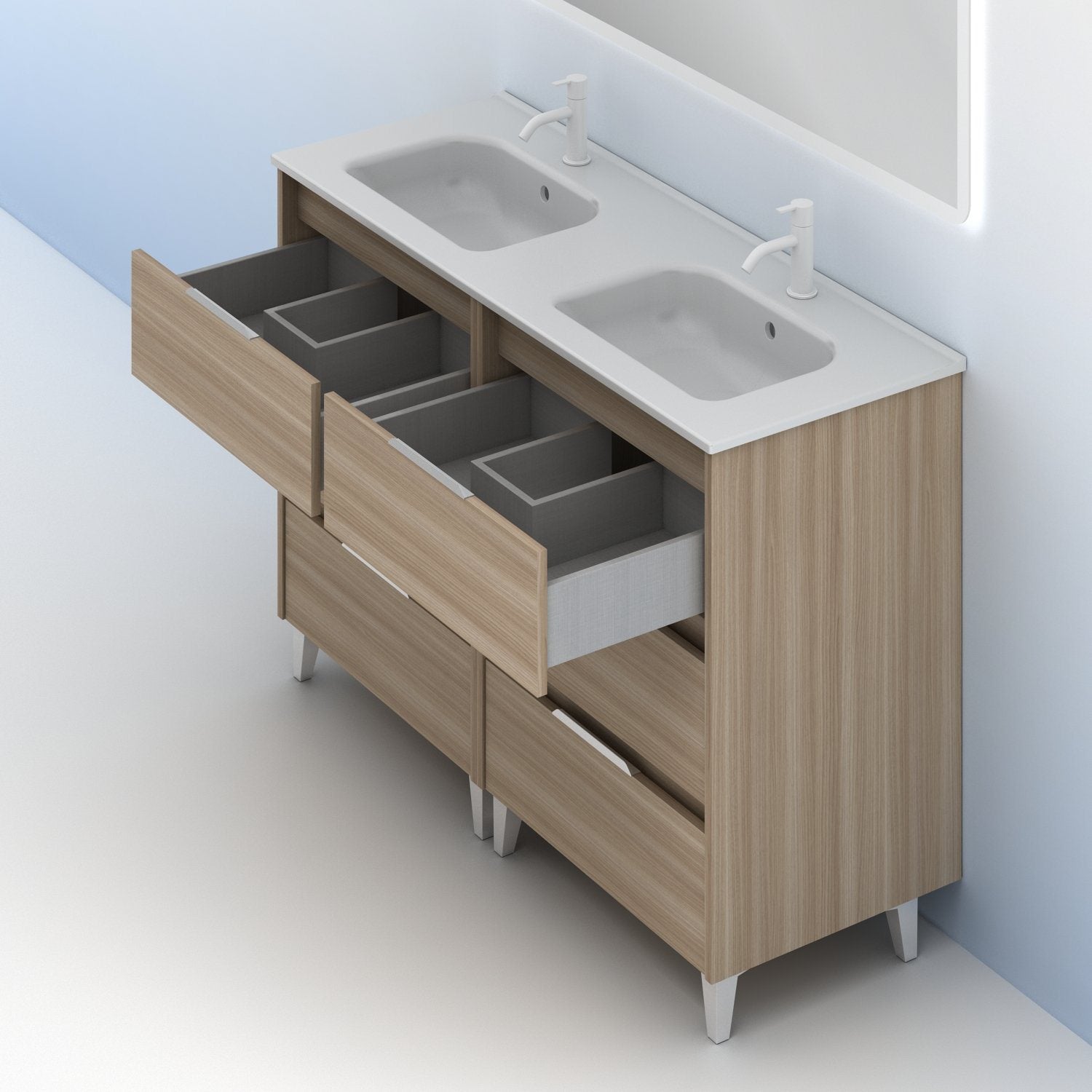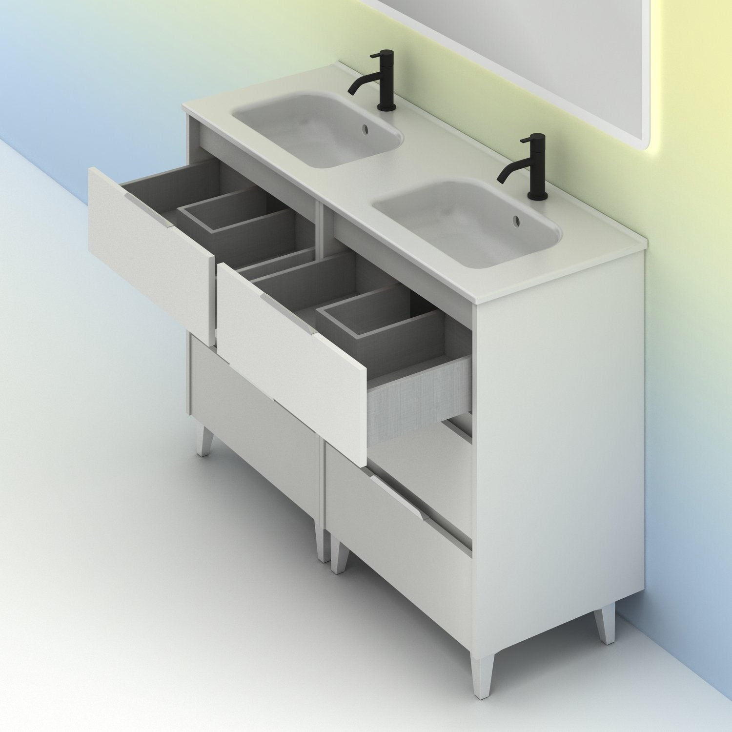 Mueble lavabo SUKI con patas. Opción Blanco, Gris, Antracita, Fumé, Nogal . 3 y 6 cajones. Lavabo simple y doble.