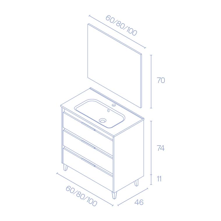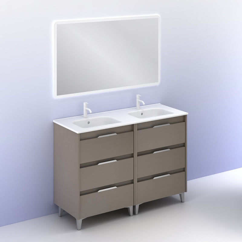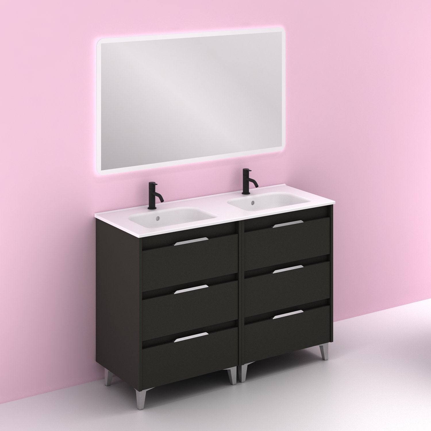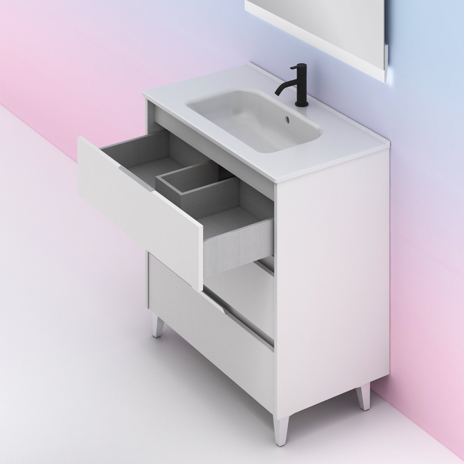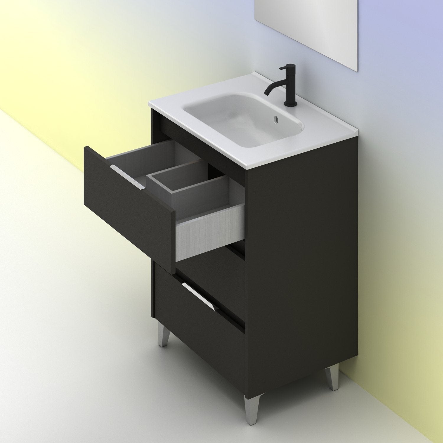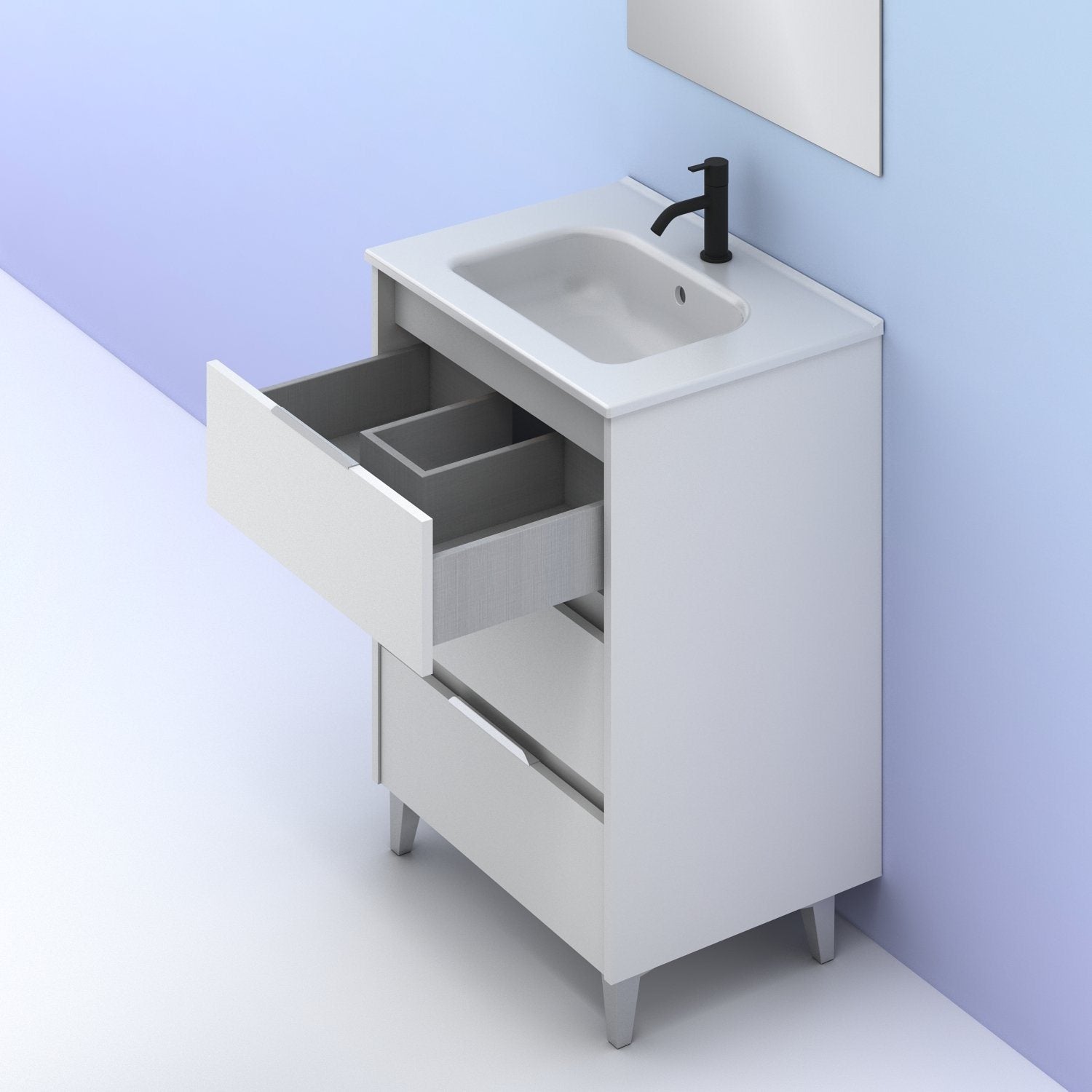 Mueble lavabo SUKI con patas. Opción Blanco, Gris, Antracita, Fumé, Nogal . 3 y 6 cajones. Lavabo simple y doble.