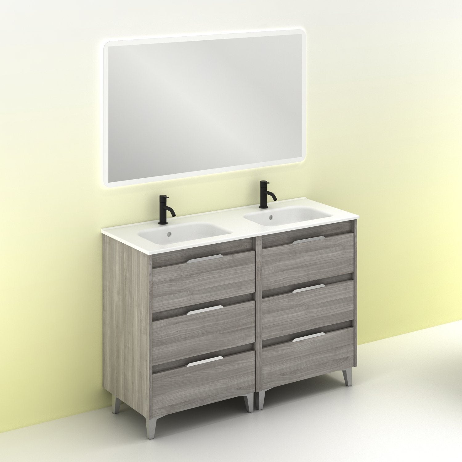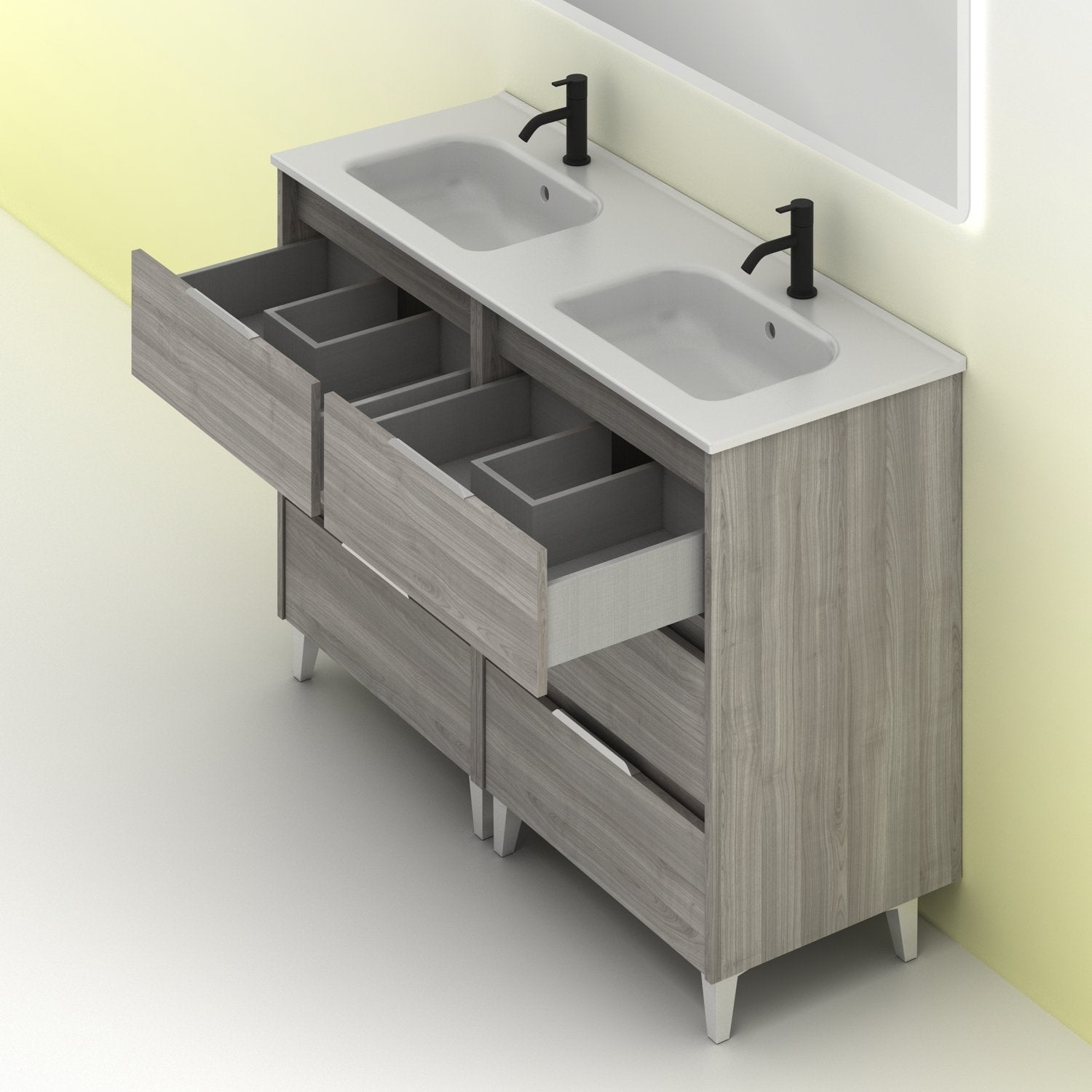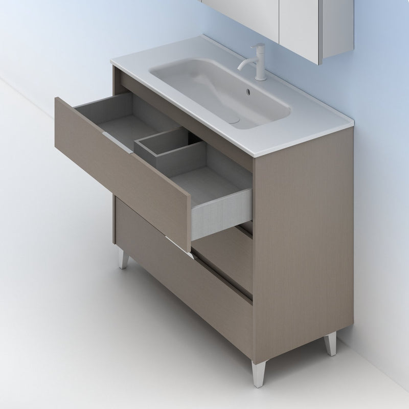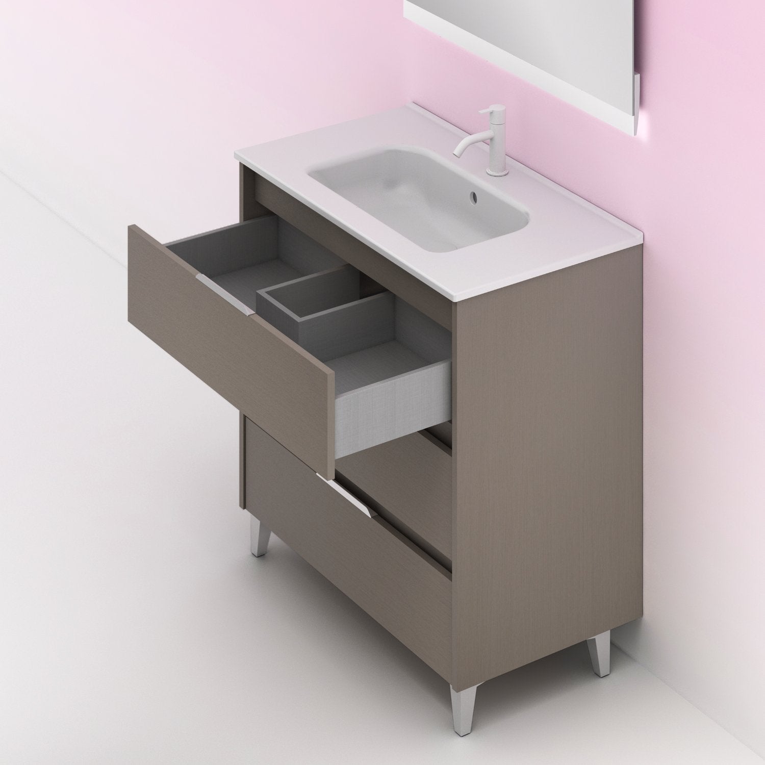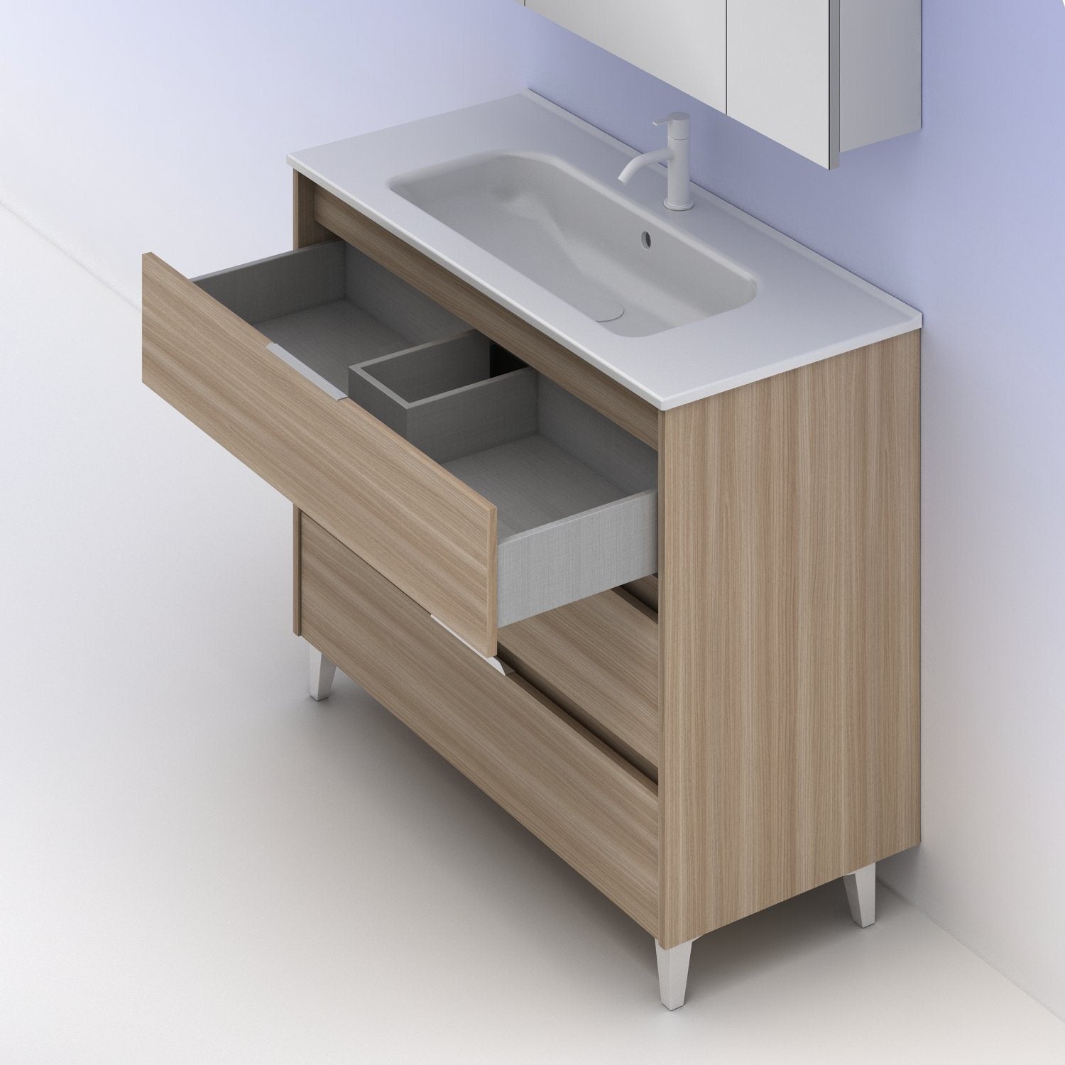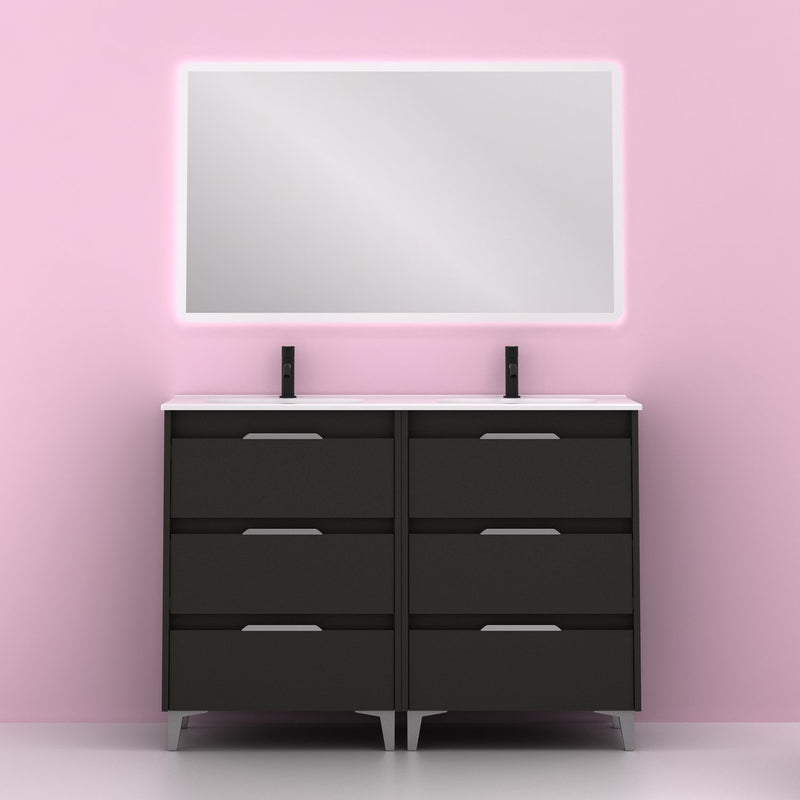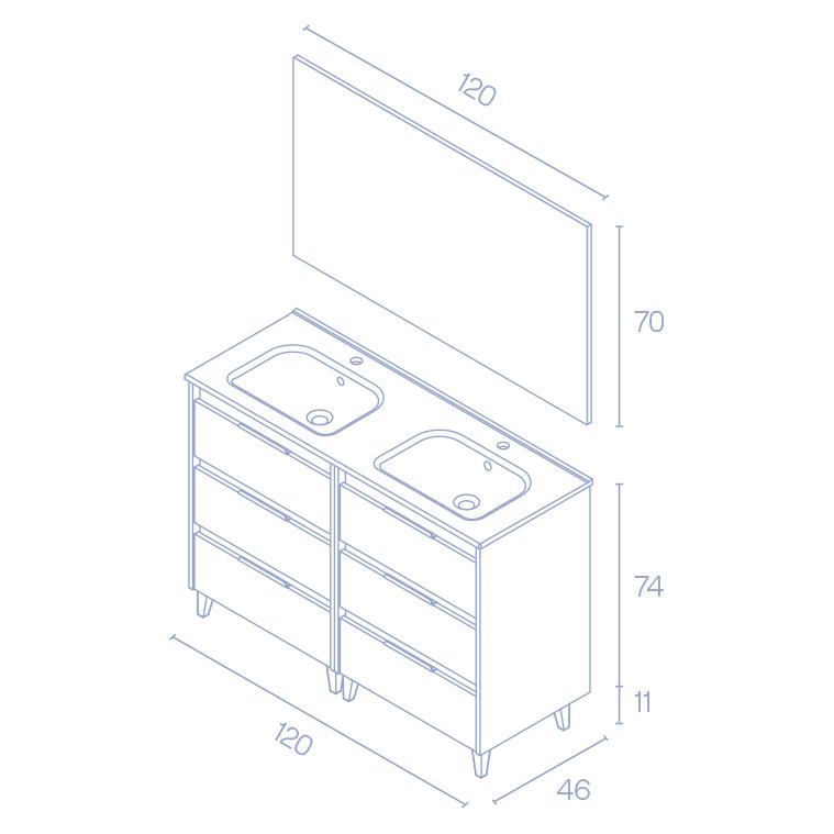Mueble lavabo SUKI con patas. Opción Blanco, Gris, Antracita, Fumé, Nogal . 3 y 6 cajones. Lavabo simple y doble.
