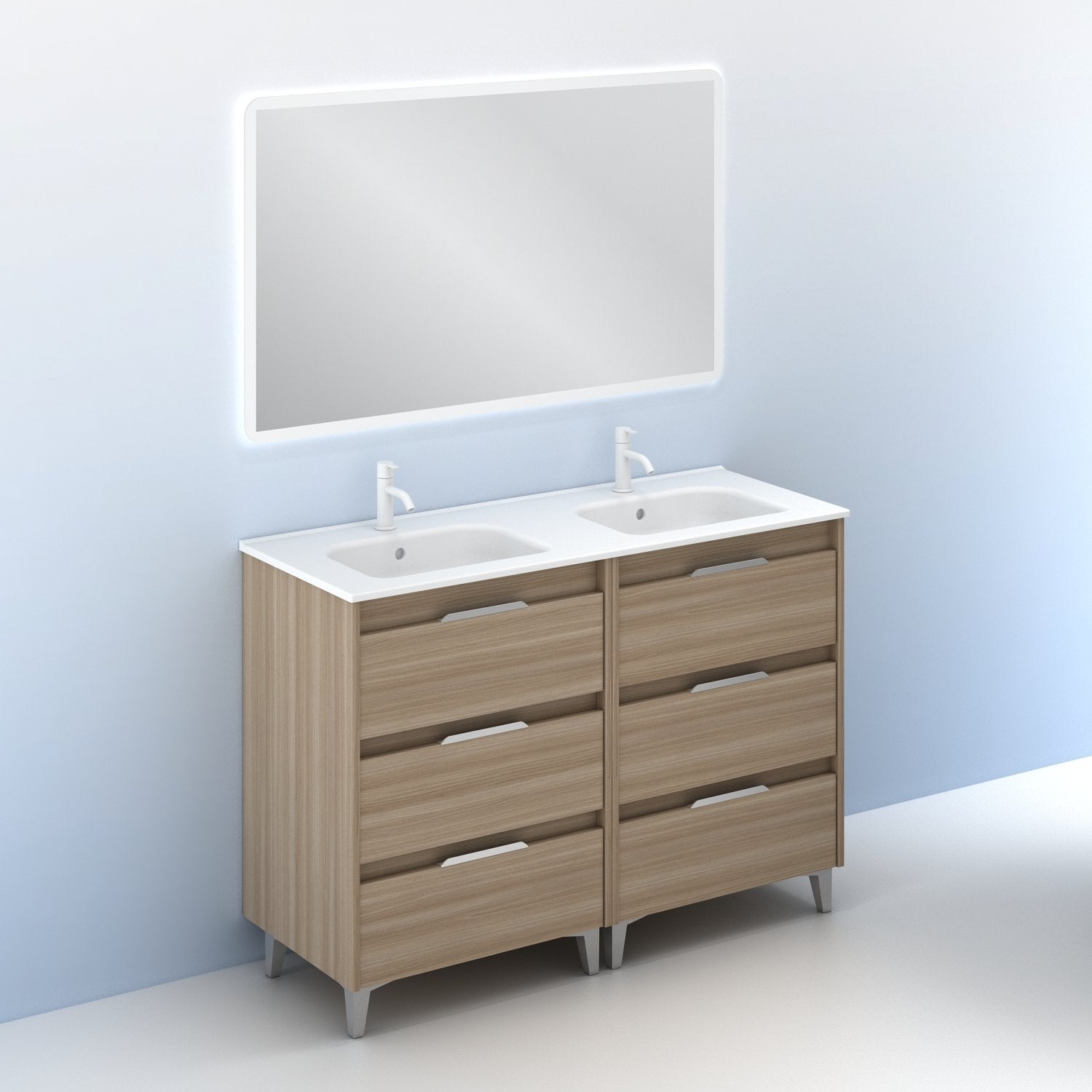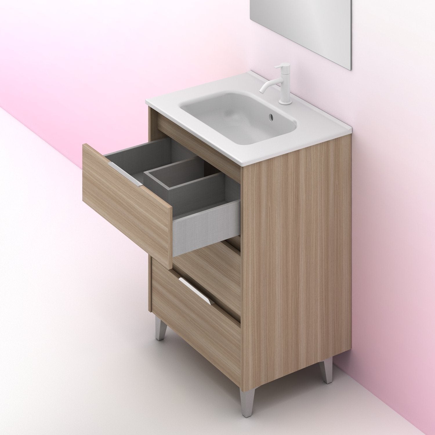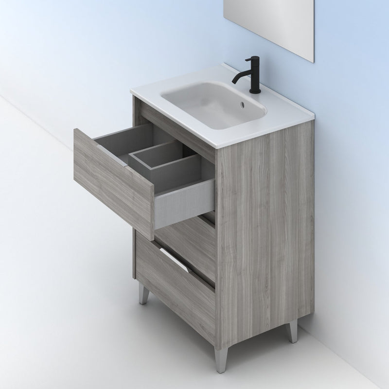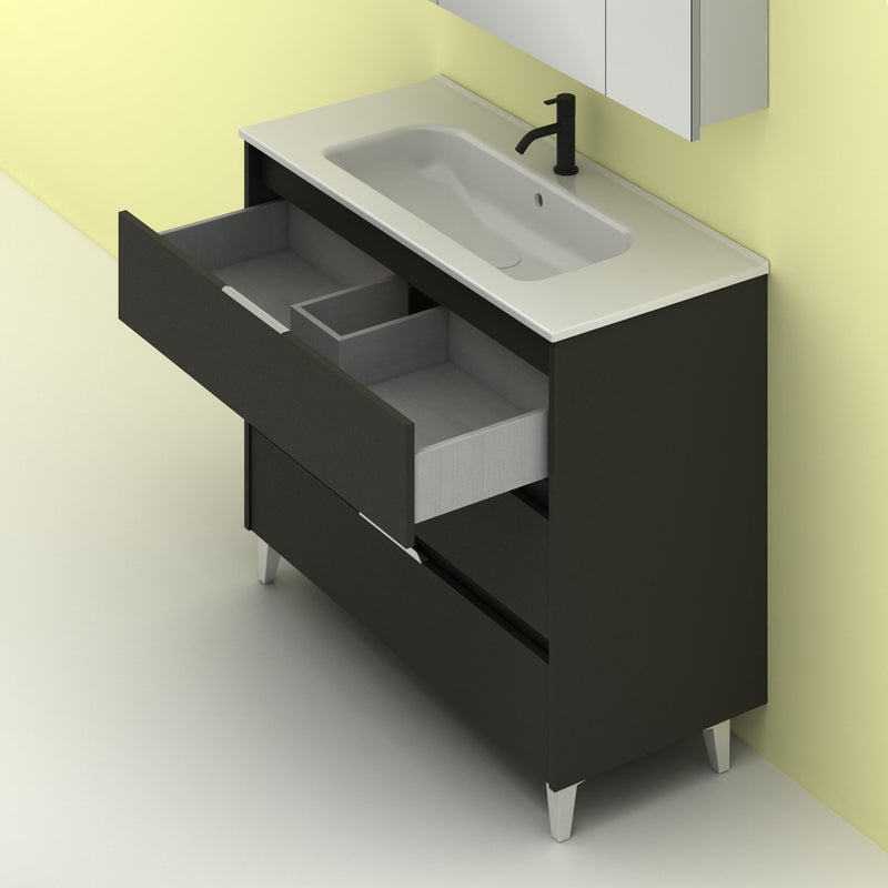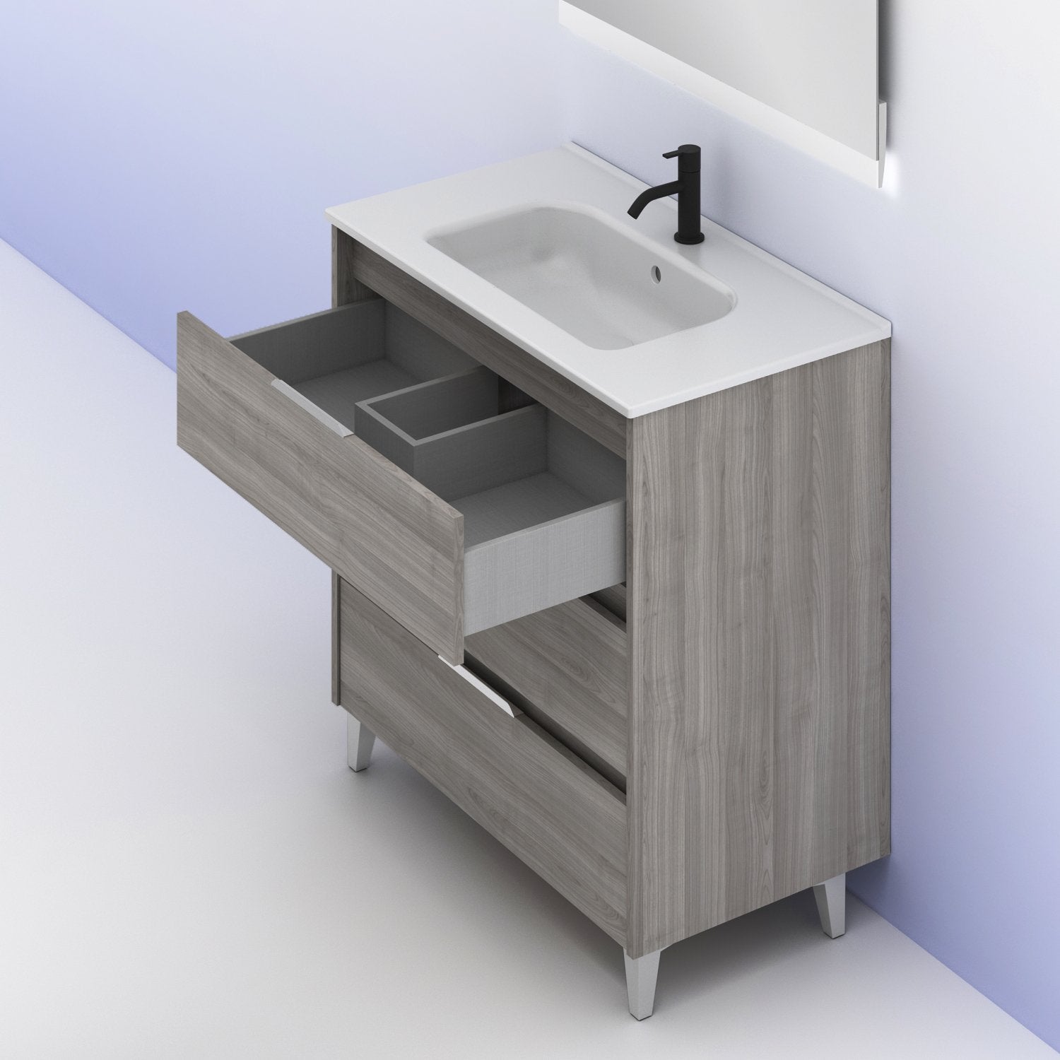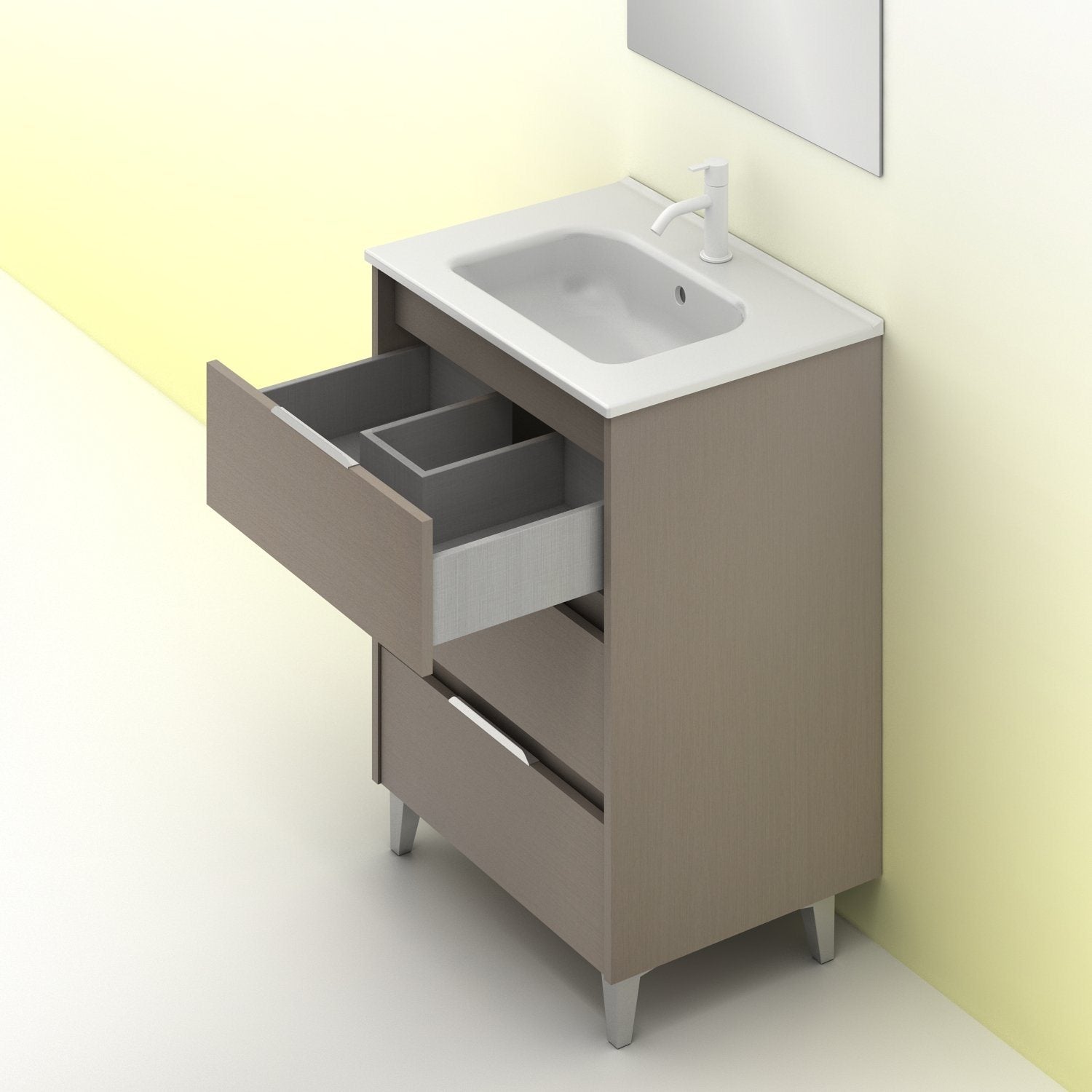 Mueble lavabo SUKI con patas. Opción Blanco, Gris, Antracita, Fumé, Nogal . 3 y 6 cajones. Lavabo simple y doble.