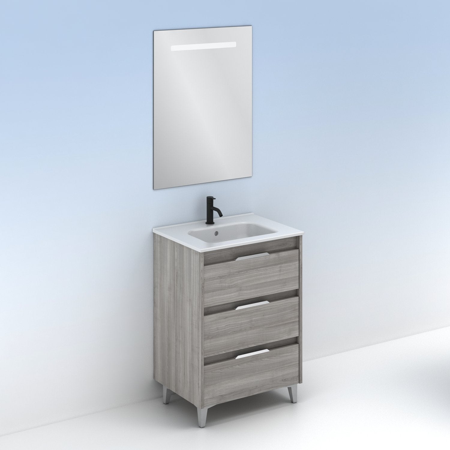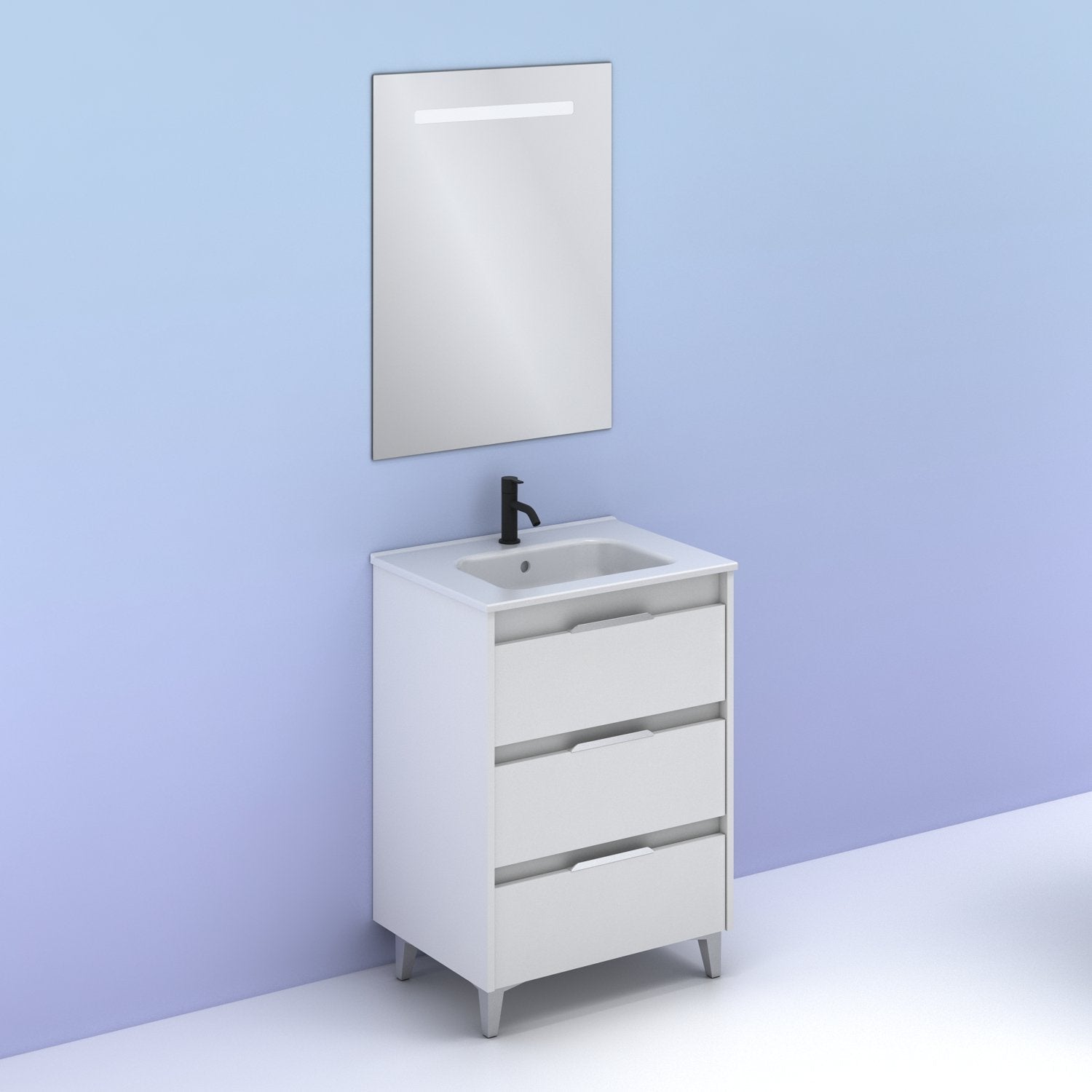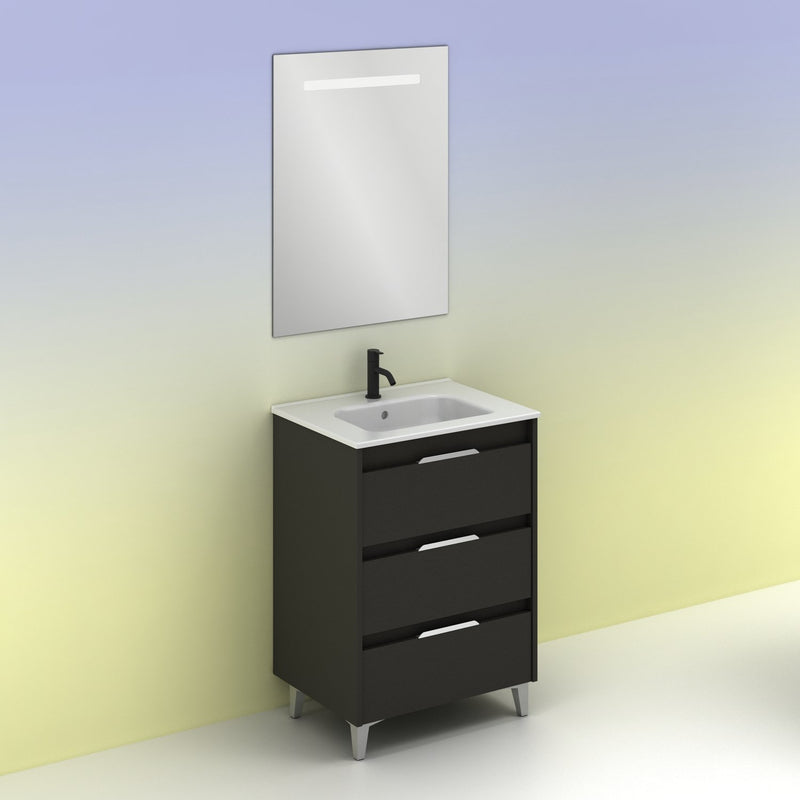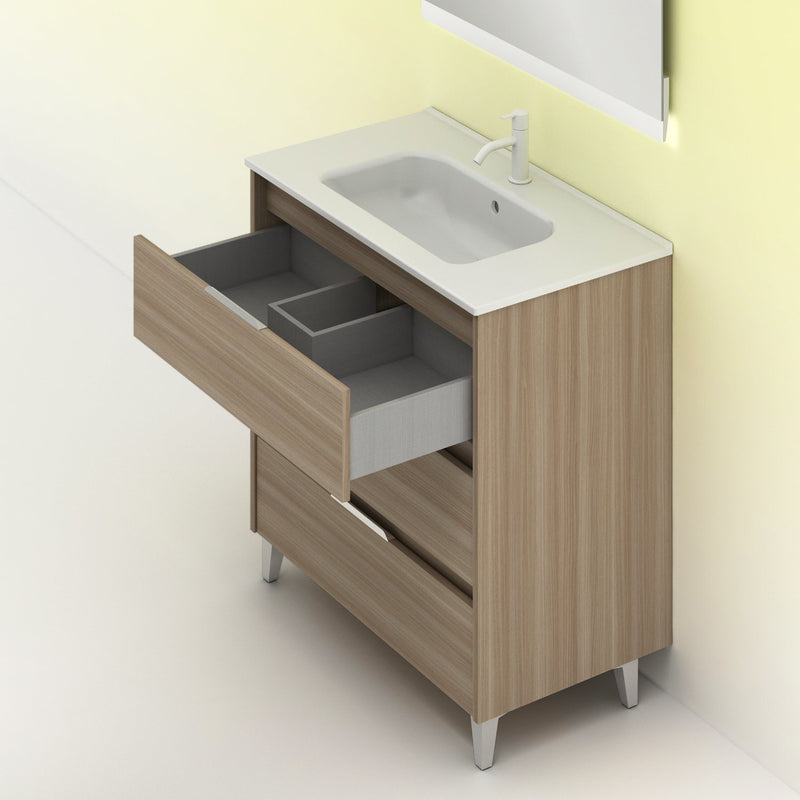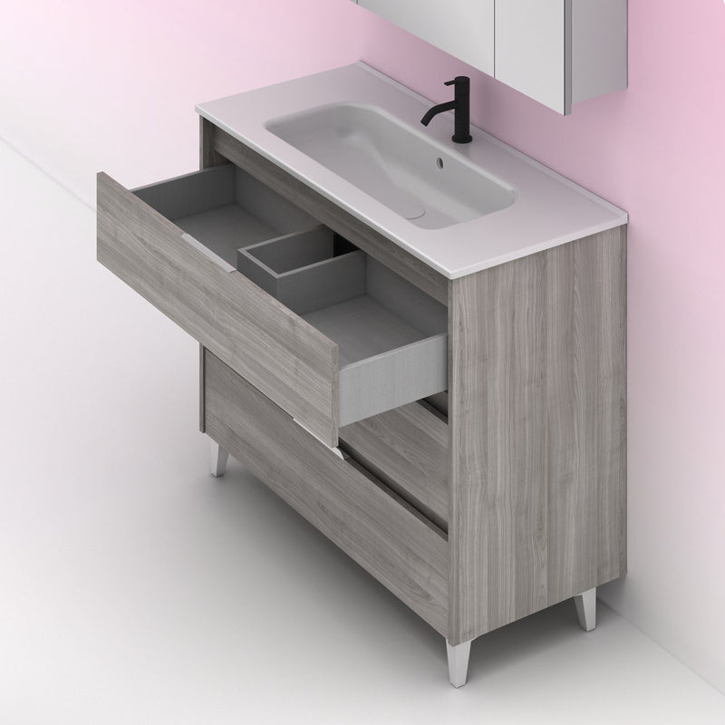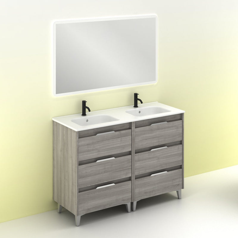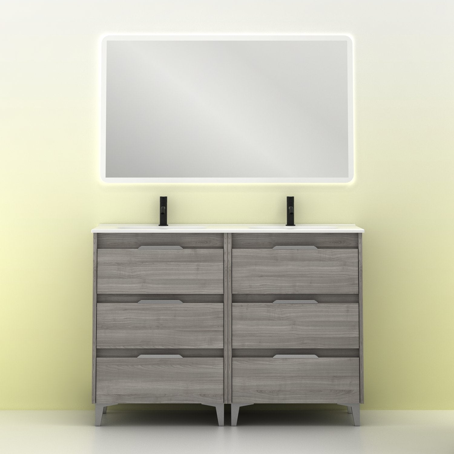 Mueble lavabo SUKI con patas. Opción Blanco, Gris, Antracita, Fumé, Nogal . 3 y 6 cajones. Lavabo simple y doble.