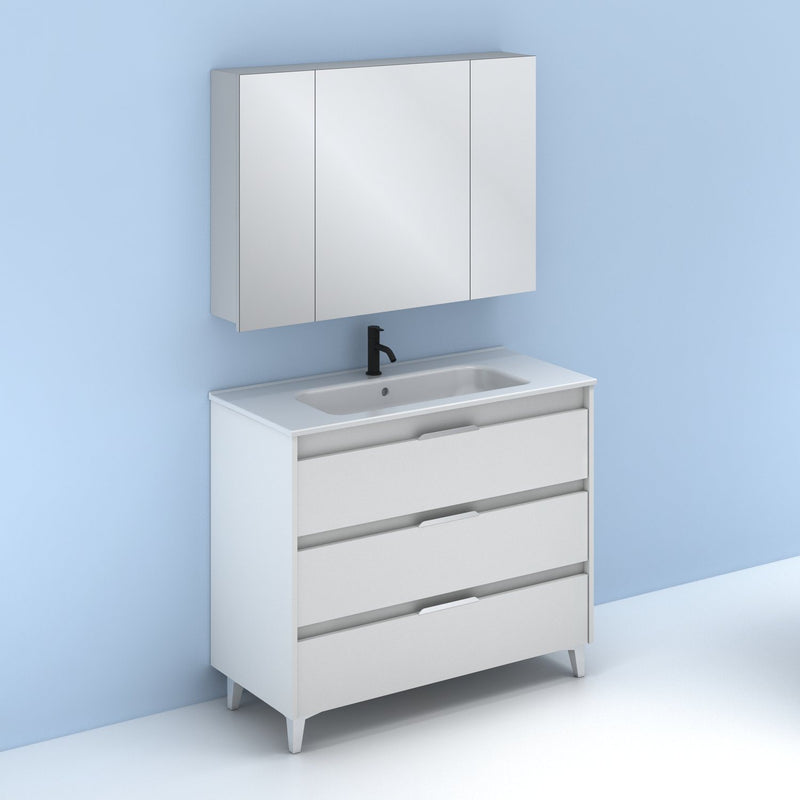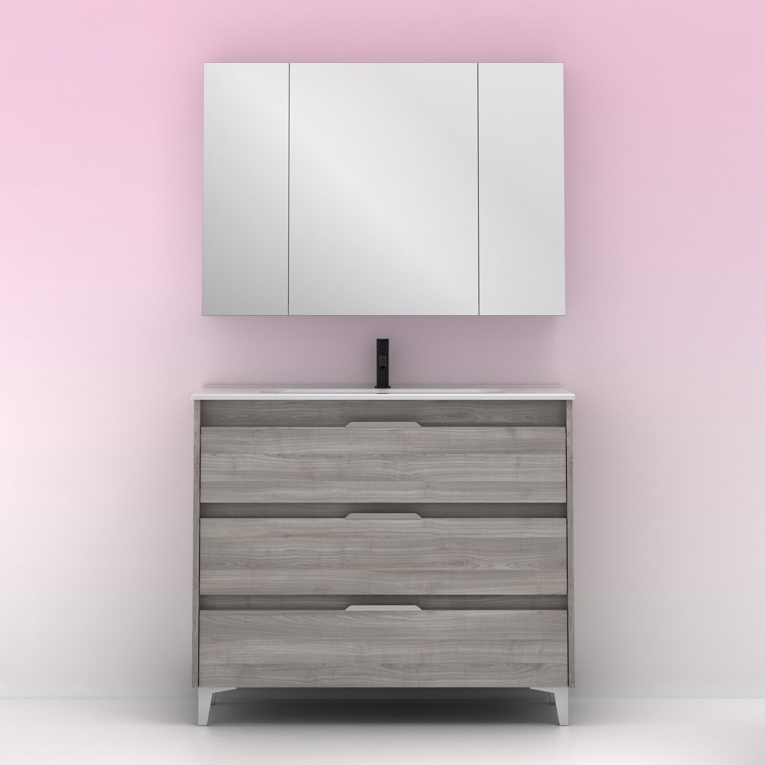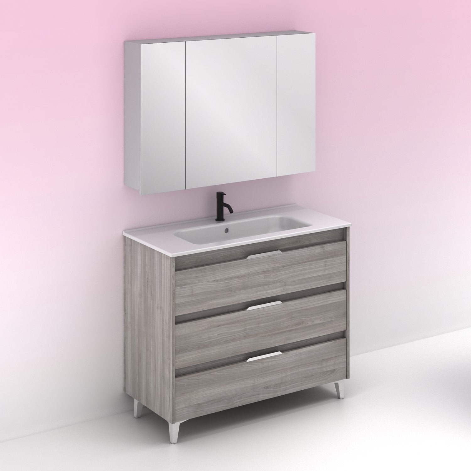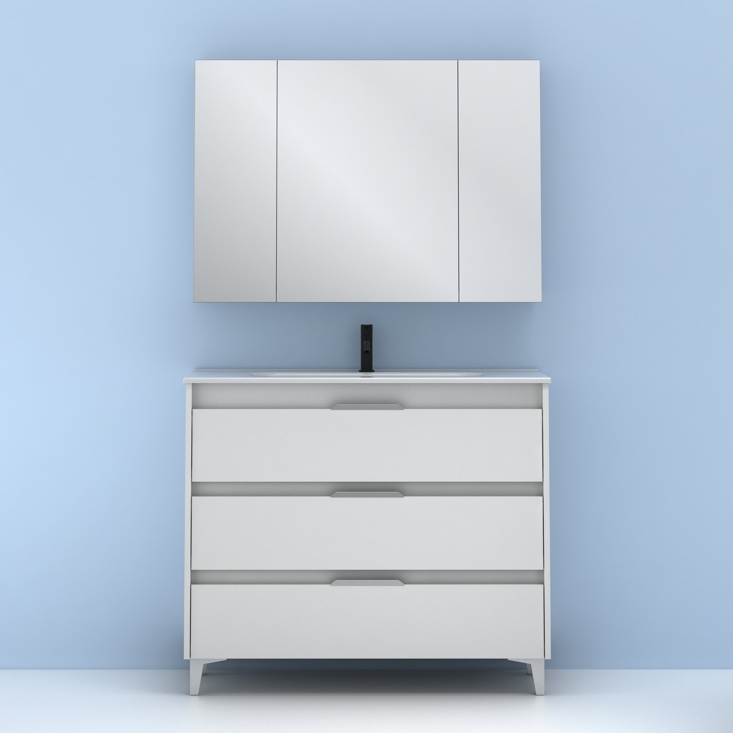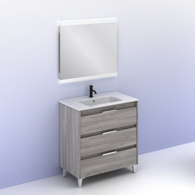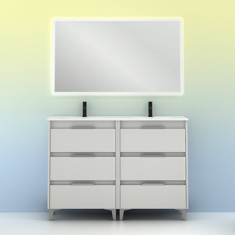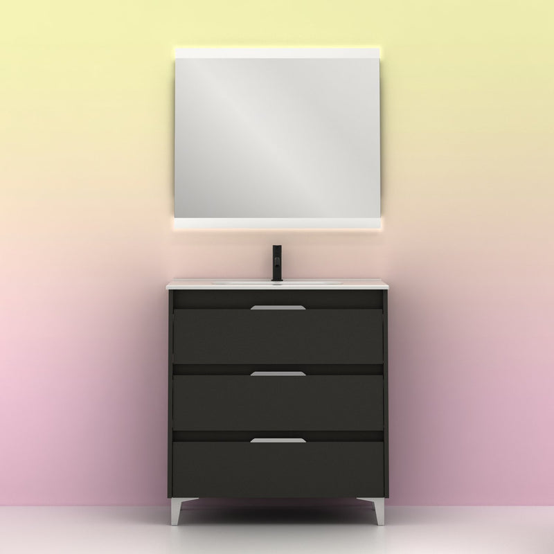 Mueble lavabo SUKI con patas. Opción Blanco, Gris, Antracita, Fumé, Nogal . 3 y 6 cajones. Lavabo simple y doble.