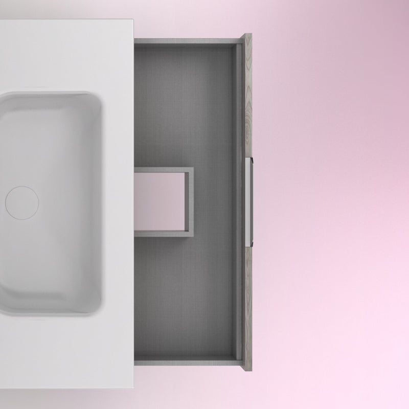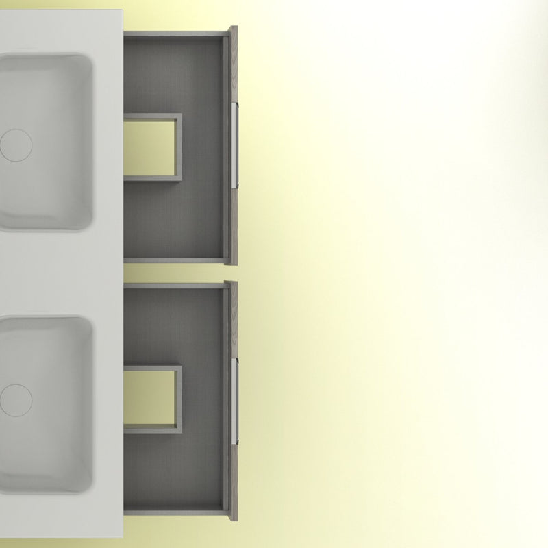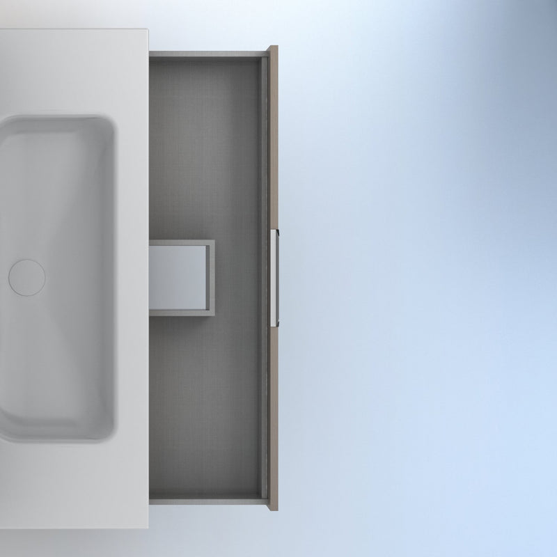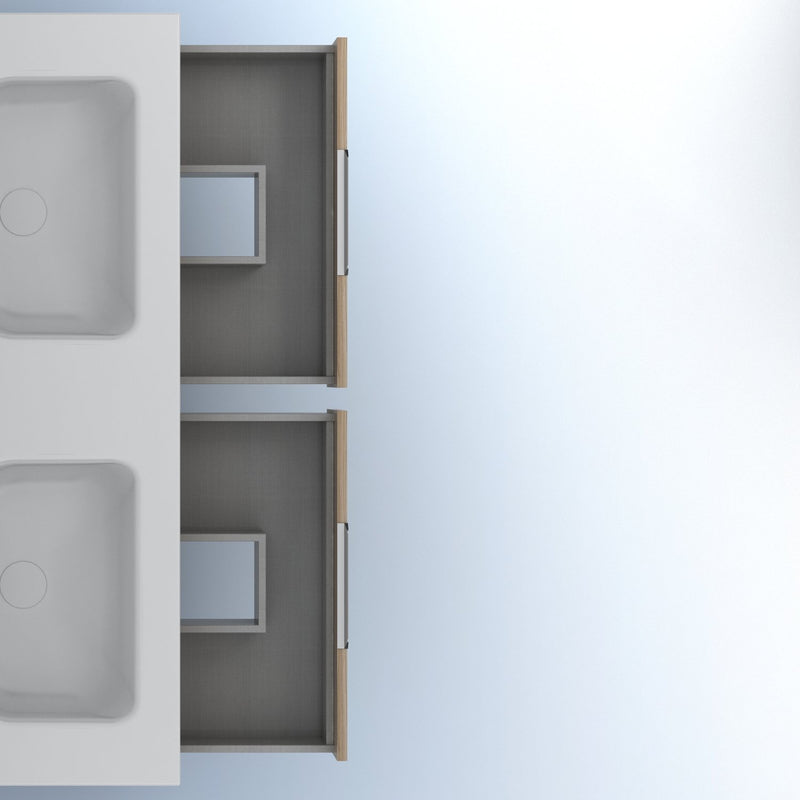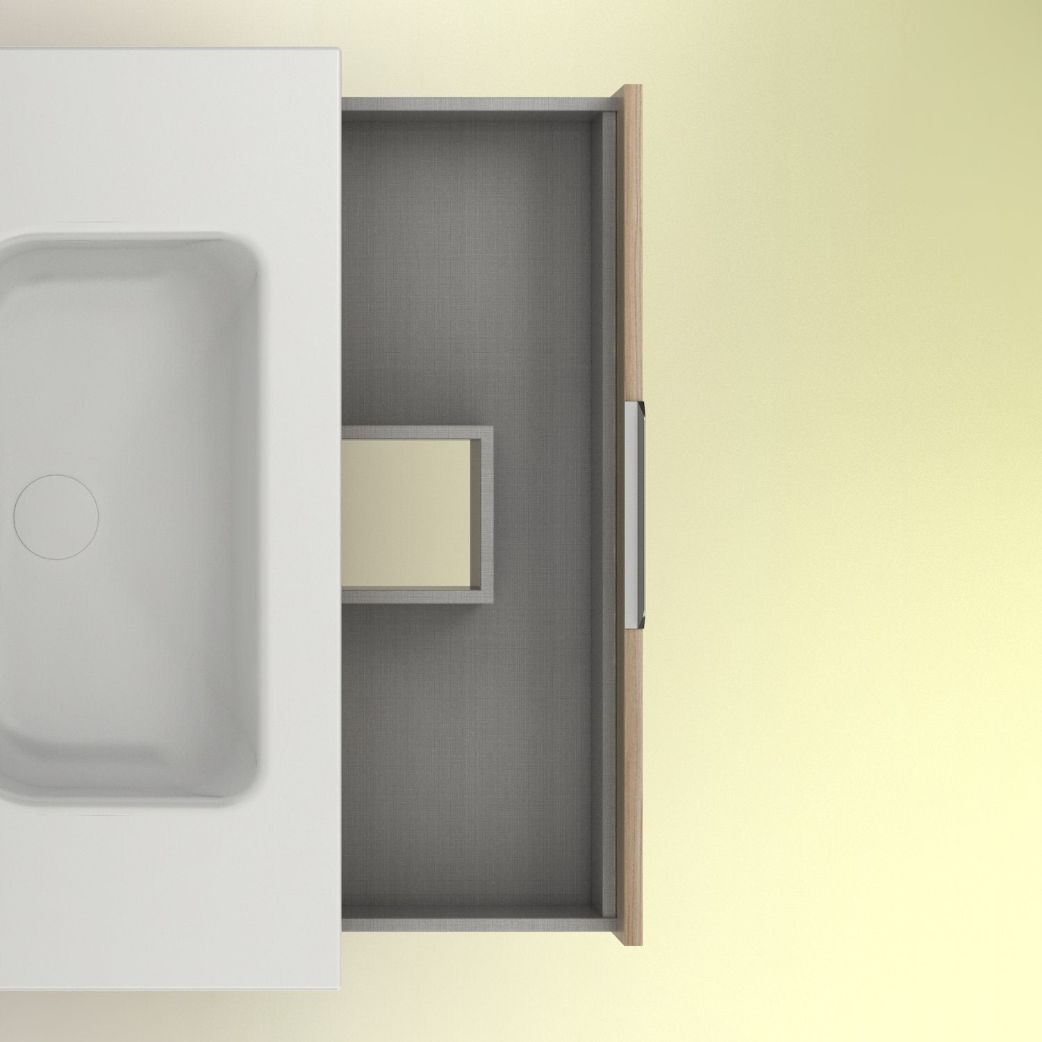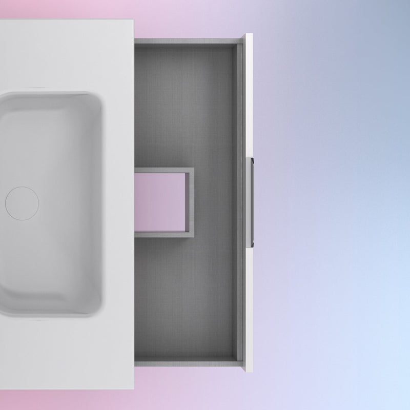- Fabricación: Este mueble esta realizado en tablero de 16mm lacado alto blanco brillo, el interior de los cajones del mueble SUKI esta realizado en una textura gris textil y las guías incorporan cierre amortiguado y otorgan accesibilidad total al interior del cajón