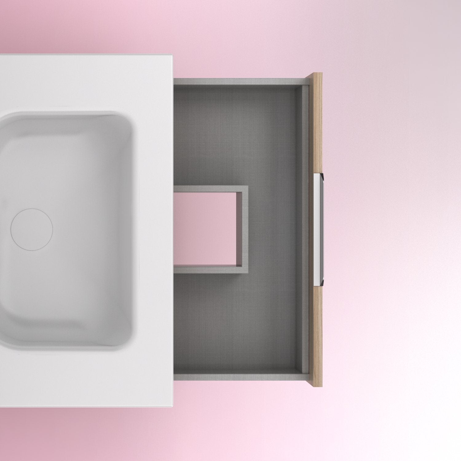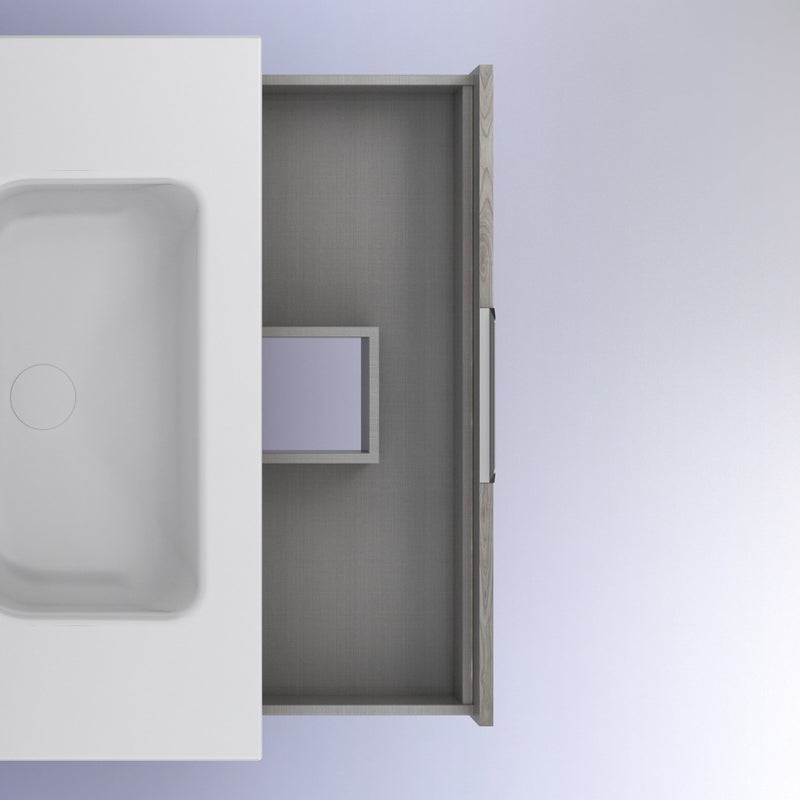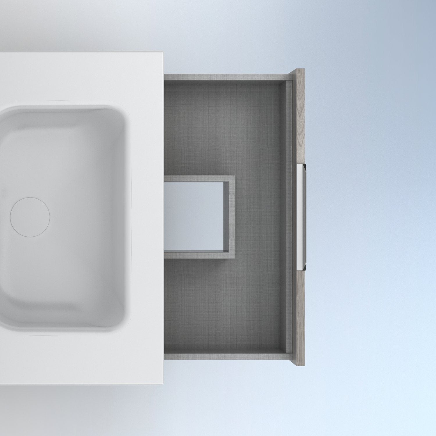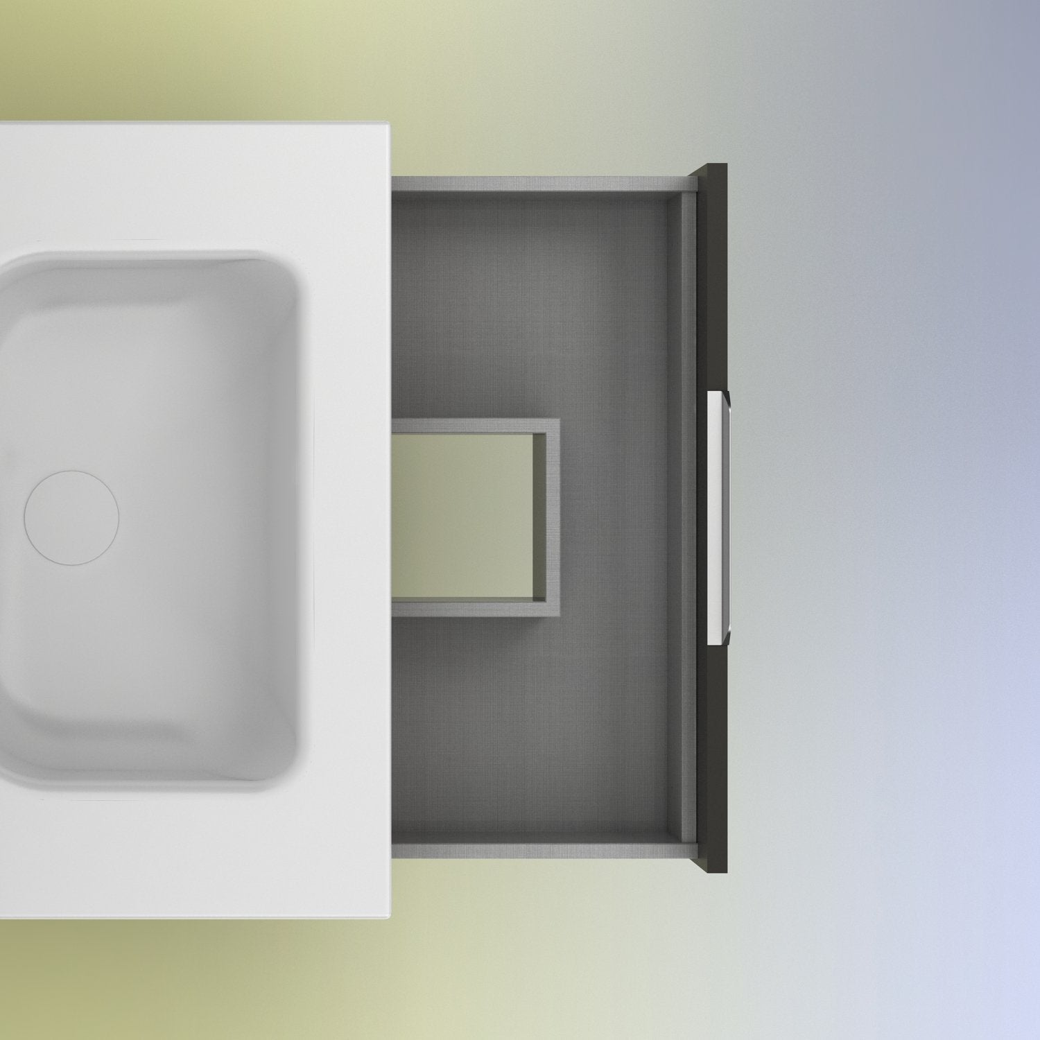 - Fabricación: Este mueble esta realizado en tablero de 16mm lacado alto blanco brillo, el interior de los cajones del mueble SUKI esta realizado en una textura gris textil y las guías incorporan cierre amortiguado y otorgan accesibilidad total al interior del cajón