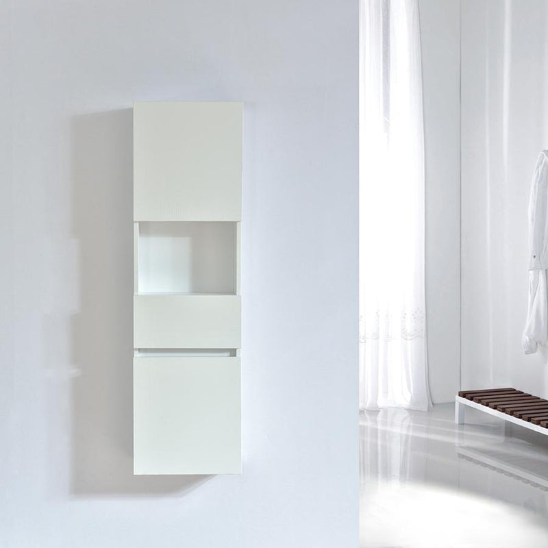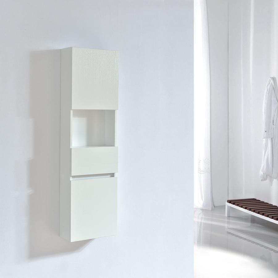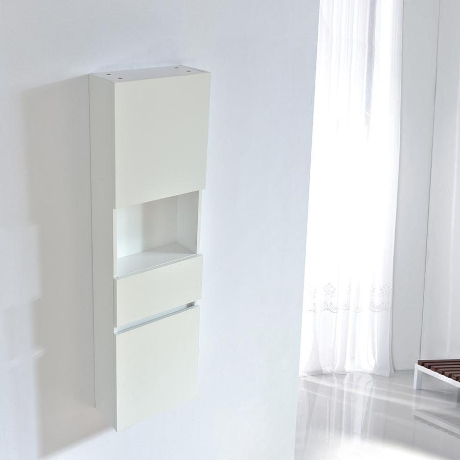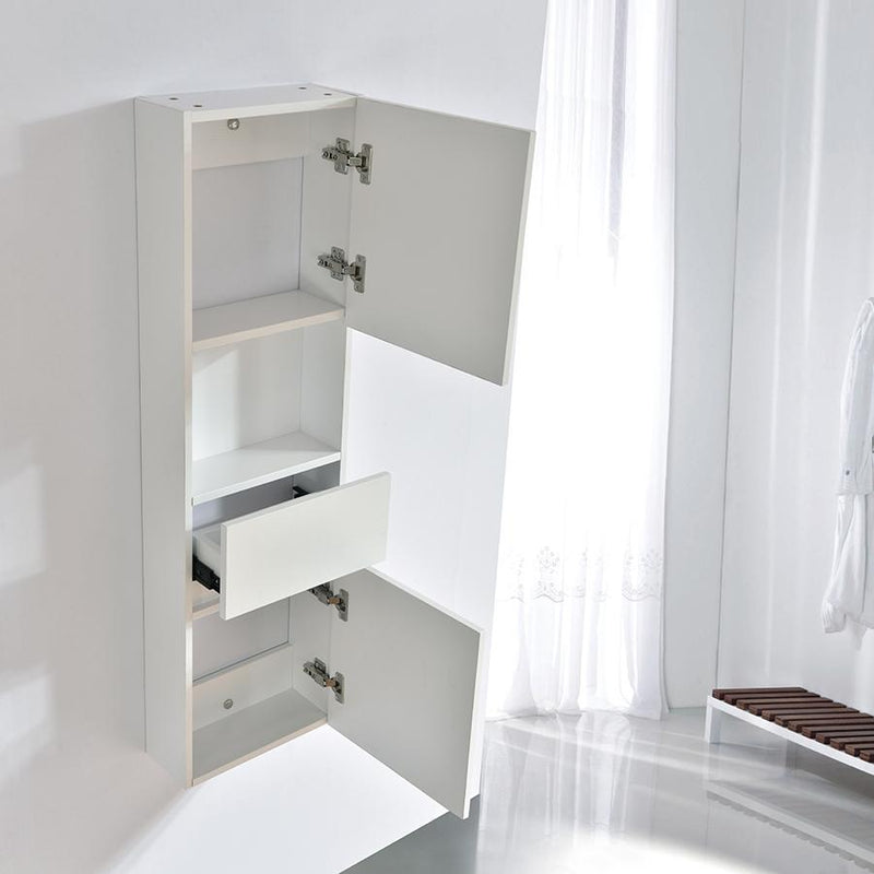 Este gran mueble columna colgante ofrece tres espacios interiores, gracias a dos grandes puertas y un cajón, así como un compartimento exterior.