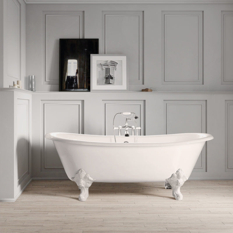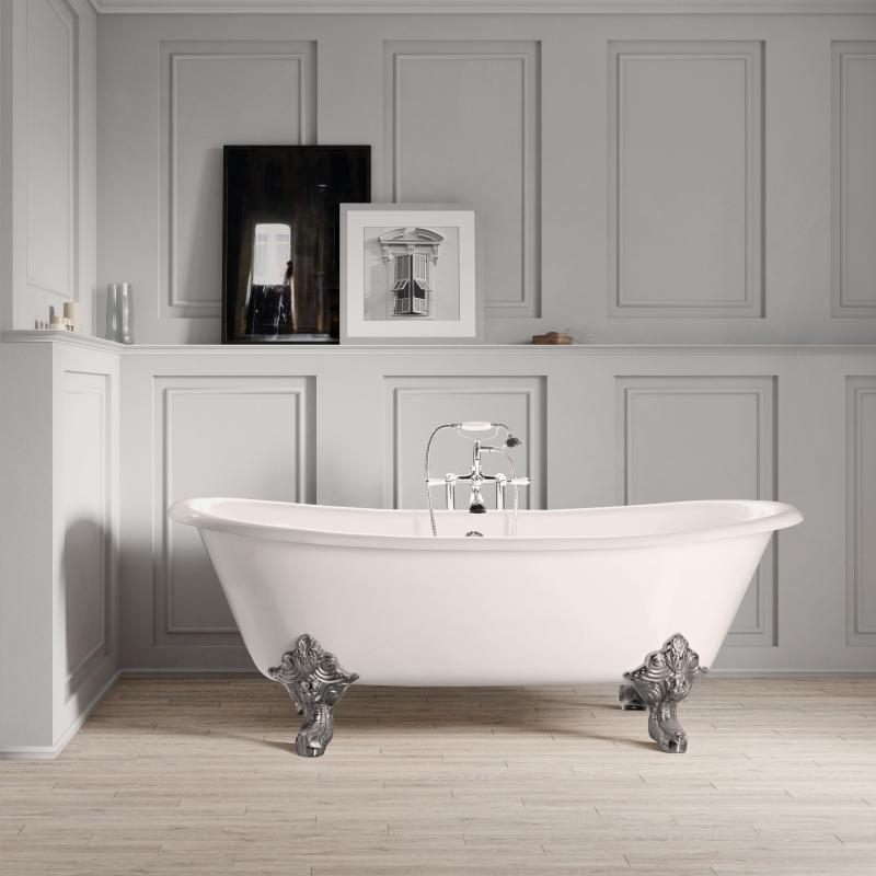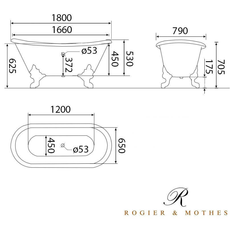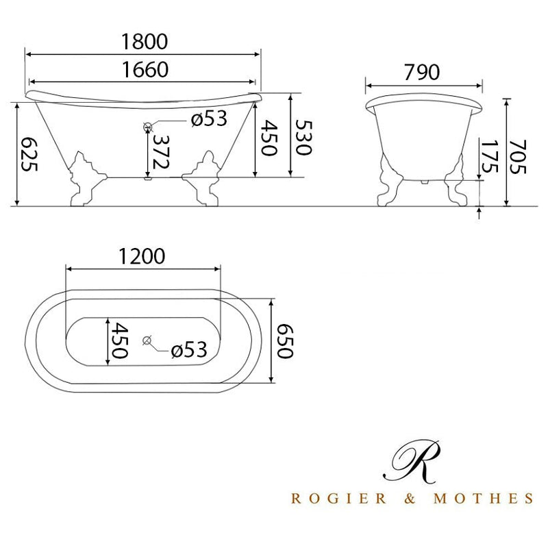 Bañera de Hierro Rogier&Mothes sobre pies estilo patas de águila. Interior esmaltado y exterior pintado a mano. Doble espalda para la comodidad de dos personas. Un modelo inspirado en épocas pasadas con las prestaciones mas actuales. Espesor del esmaltado interior: 1.5-2.0 mm.