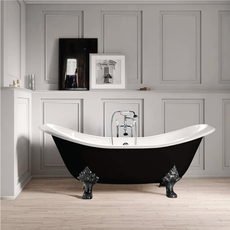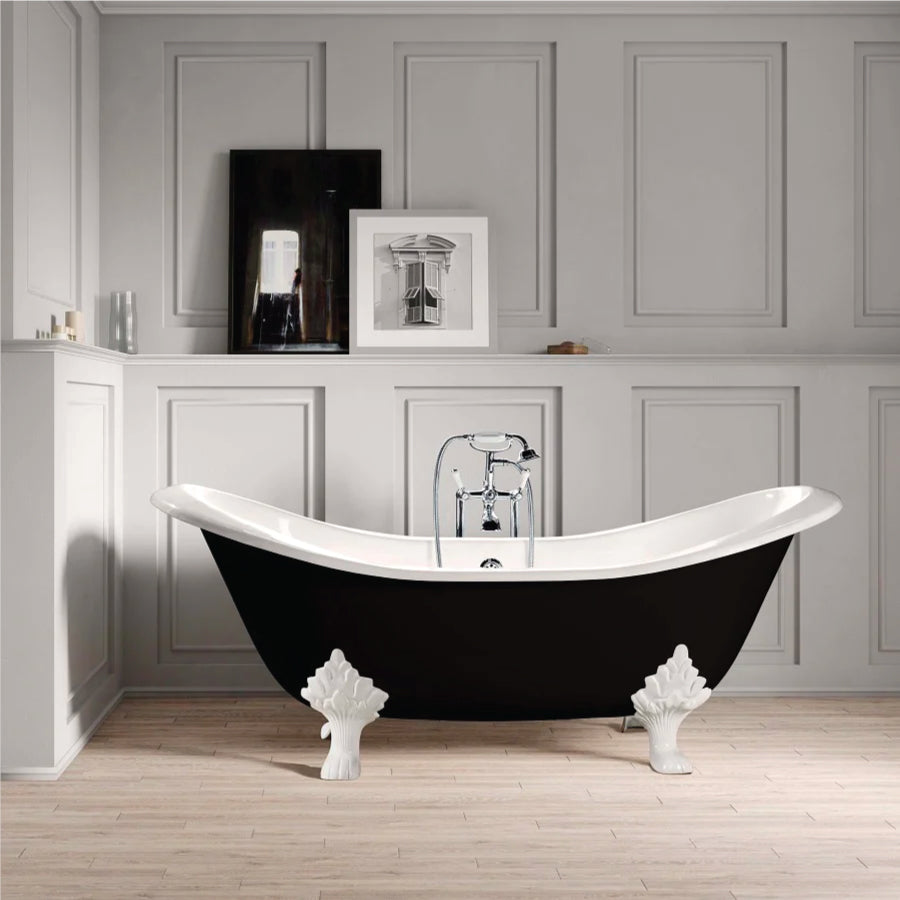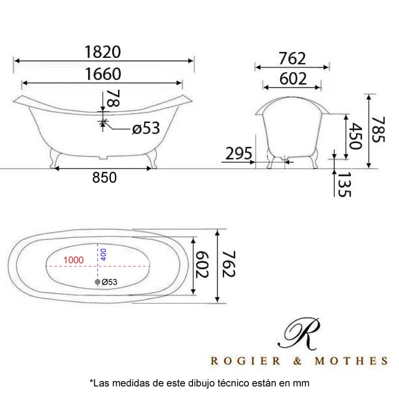 Bañera de Hierro Rogier&Mothes sobre pies estilo patas de águila. Interior esmaltado y exterior pintado a mano. Doble espalda para la comodidad de dos personas. Un modelo inspirado en épocas pasadas con las prestaciones mas actuales.