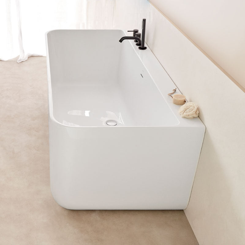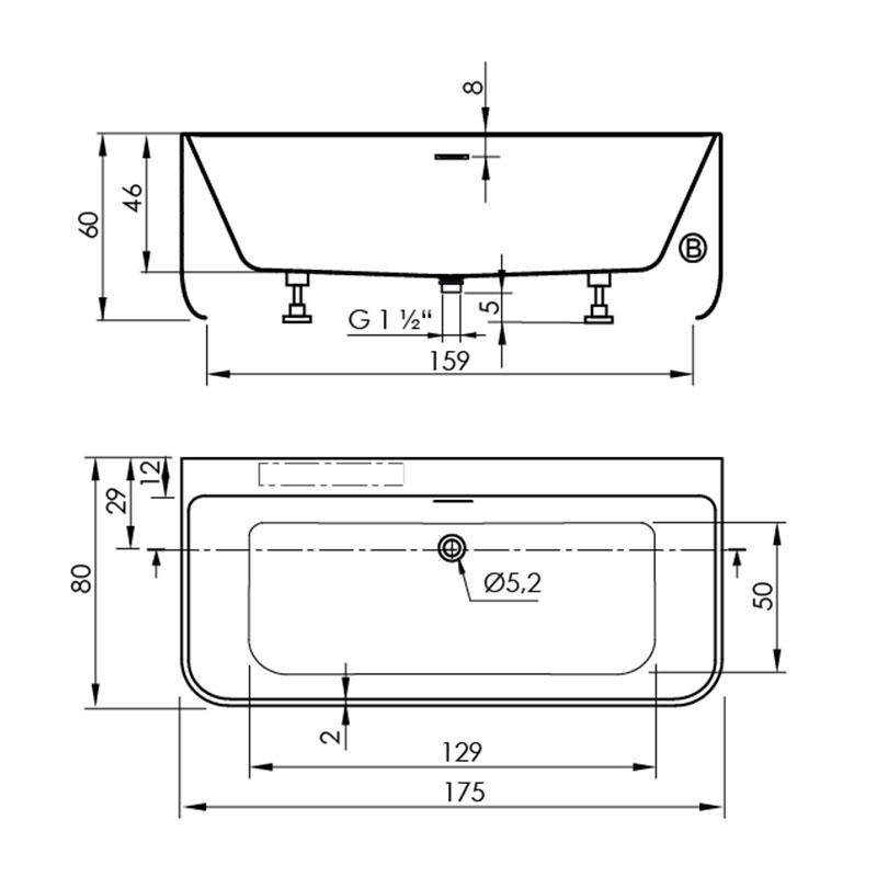 Bañera exenta de acrílico reforzado de SANYCCES, con dos capas de acrílico de 8mm de alta calidad y reforzamiento con fibra de vidrio muy resistente. Bañera de una sola pieza, cantos redondeados y desagüe incluido. Longitud 175 cm. Color blanco.