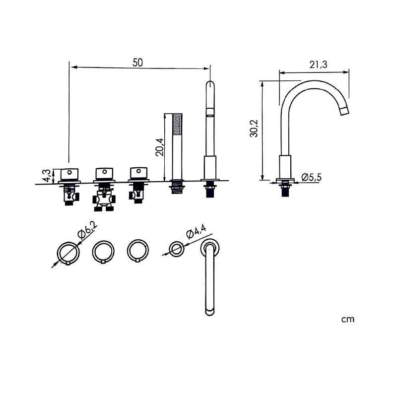 - Desagüe completo con válvula presión push/pull incluido y pre-instalado en la bañera.
