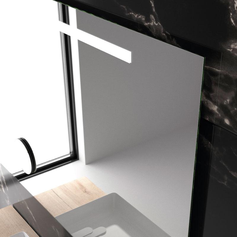 El espejo incorpora tiras de iluminación LED en los bordes del marco, superior e inferior. La luz incorporada a este espejo es fría.