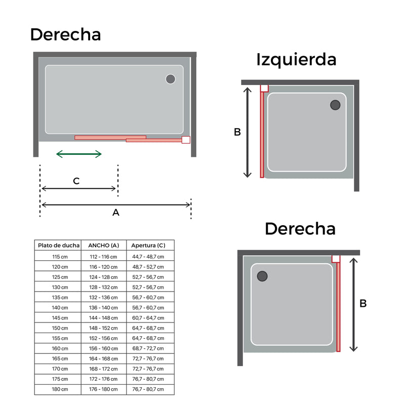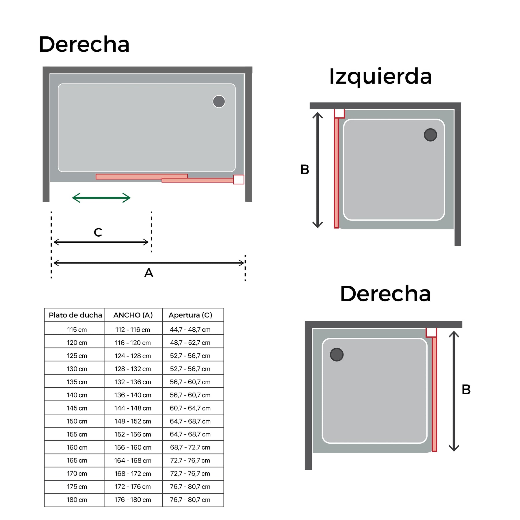 - Espesor del material: 8 mm en paneles fijos y 6 mm en la puerta