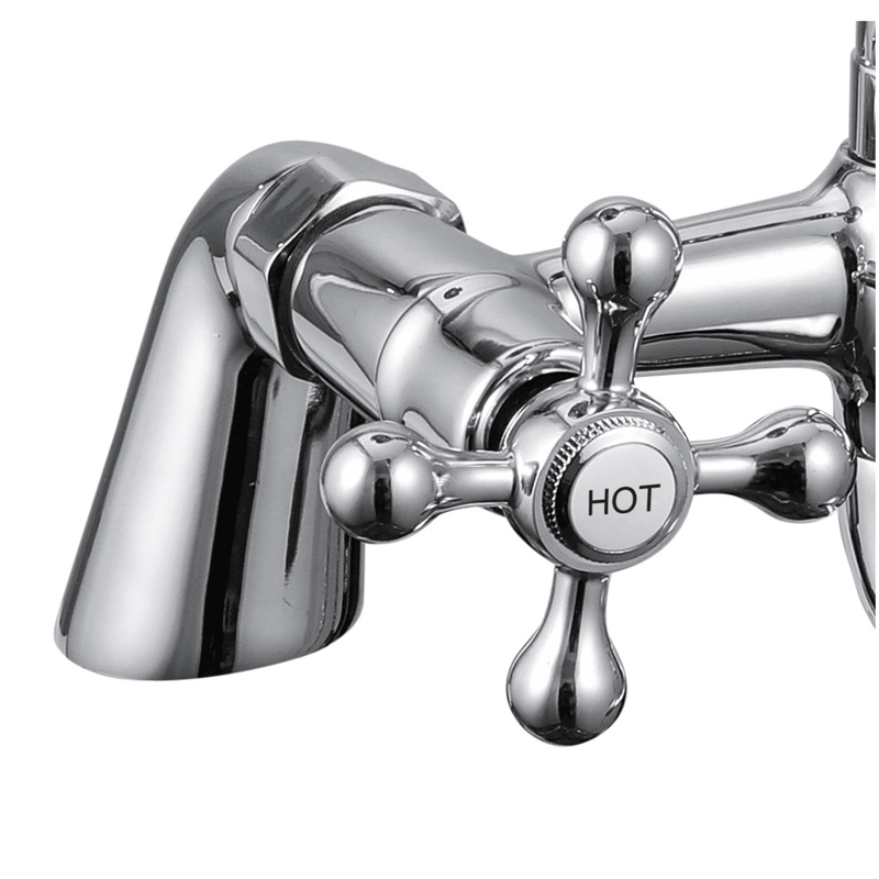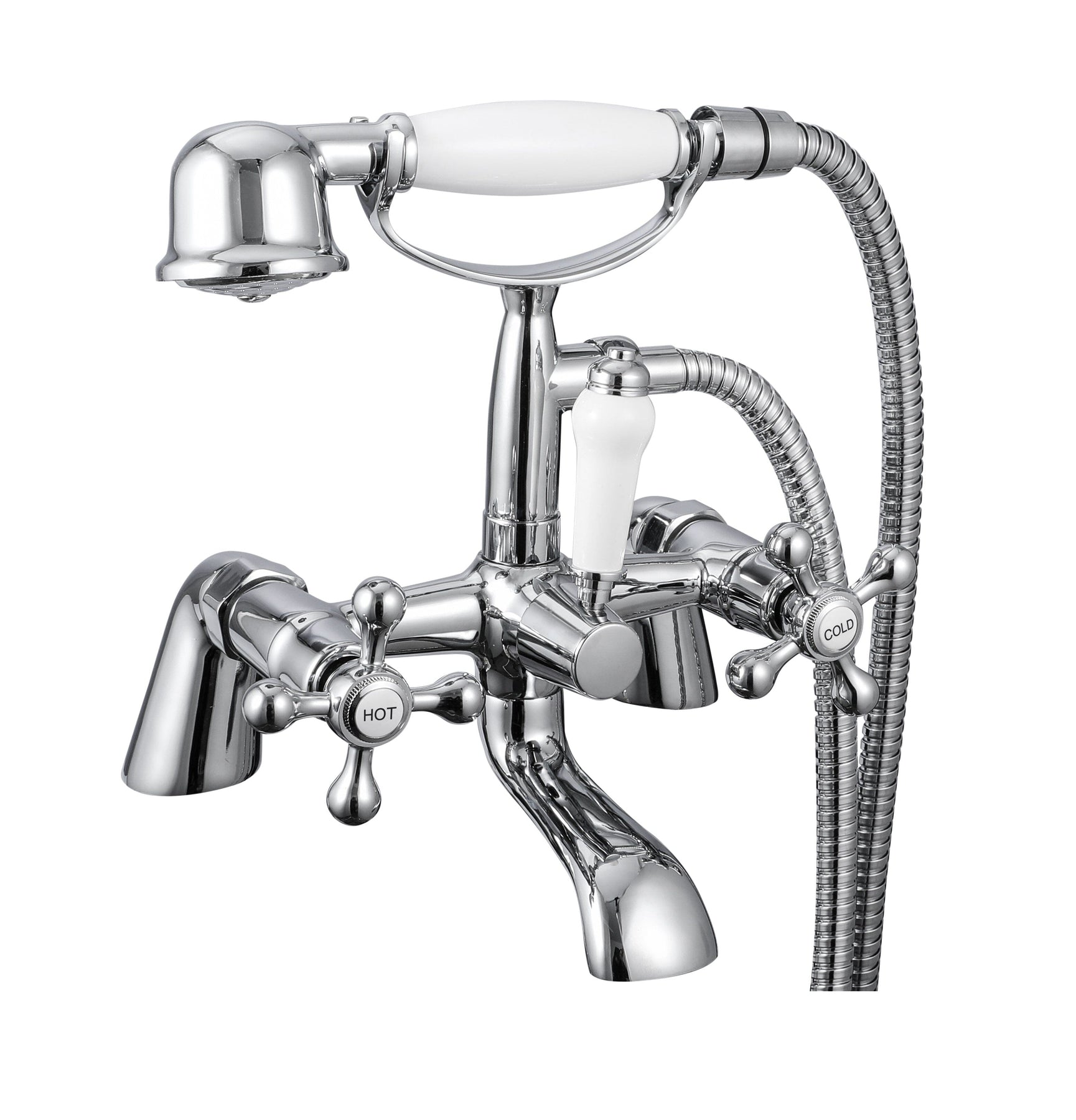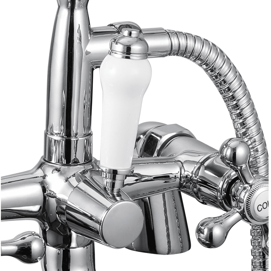 - Grifo de bañera estilo retro ducha de mano con mango de cerámica, un soporte de ducha retro y un flexible de ducha doble grapado antitorsión de longitud 150 cm