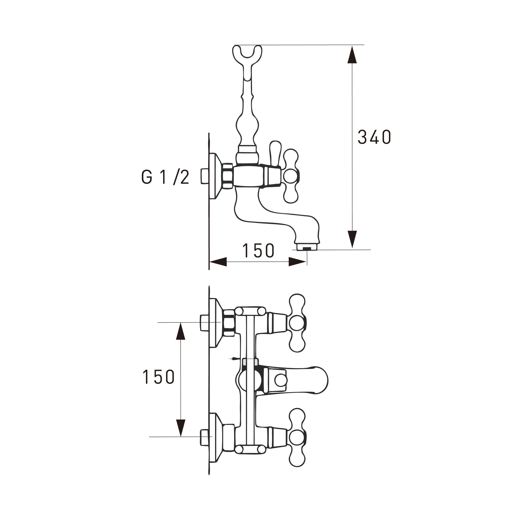 - Un grifo bimando volante bañera/ducha mural con salida bañera