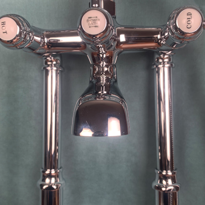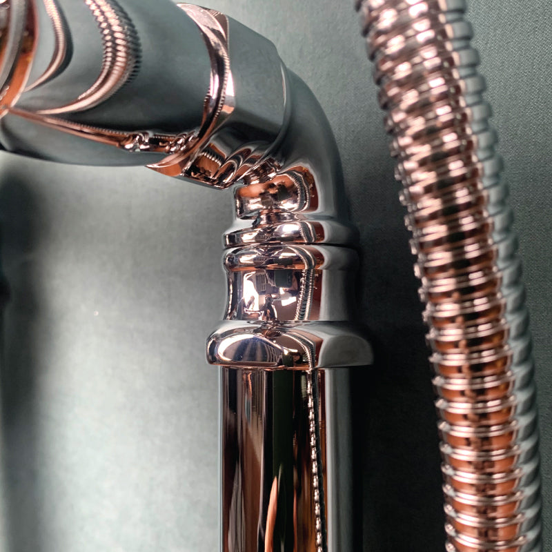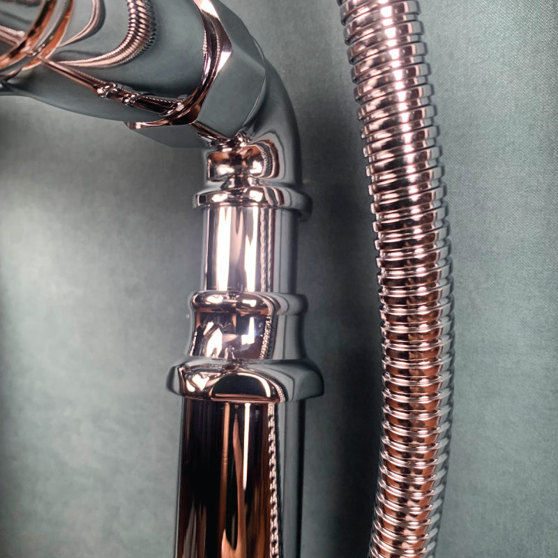 - Fabricación de calidad en latón macizo acabado cromado. Instalación por fijación al suelo para una bañera clásica de hierro fundido o una bañera retro de Resicryl®