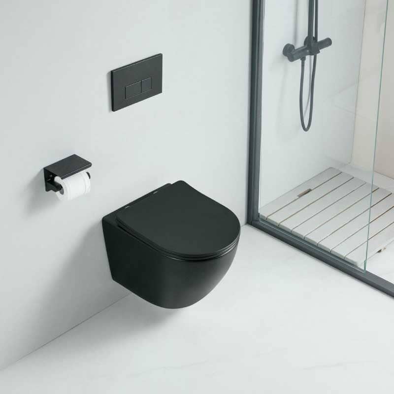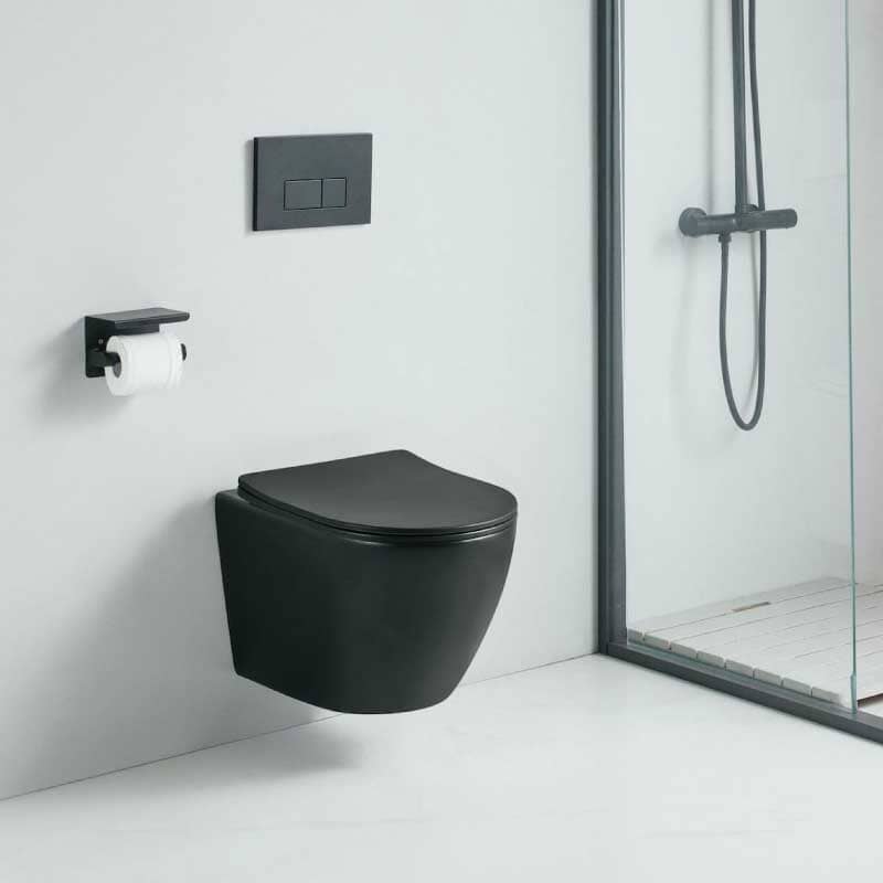 Inodoro suspendido con un diseño minimalista, moderno y elegante, en color negro mate. Sus líneas son sobrias y refinadas, le permiten armonizar perfectamente en cualquier baño moderno.