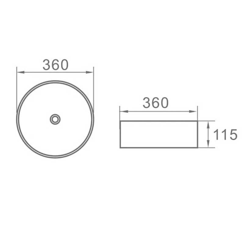 - Medidas: largo 360 mm x ancho 360 mm x altura 115 mm. 360 mm de diámetro