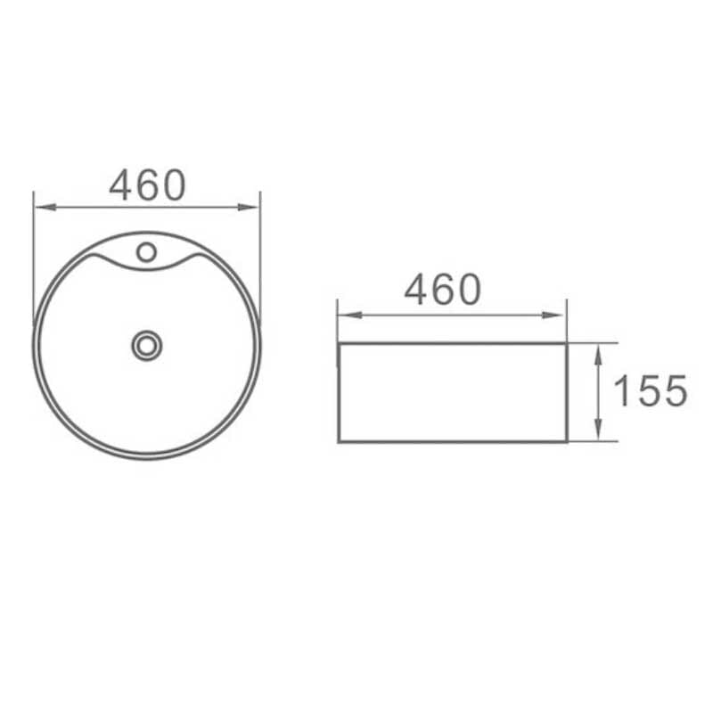 - Medidas: largo 460 mm x ancho 460 mm x altura 155 mm. 460 mm de diámetro
