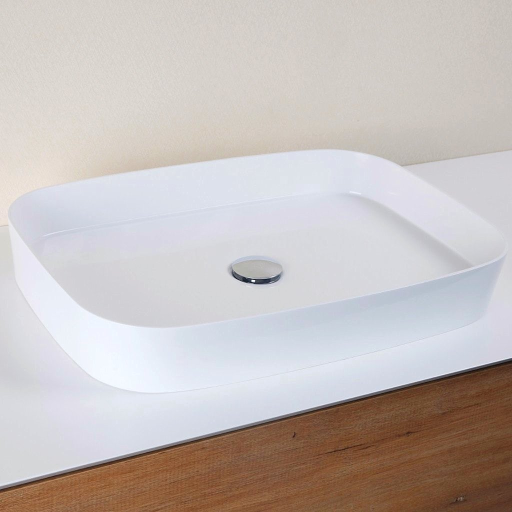 Lavabo sobre encimera STANO de diseño contemporáneo de la colección SIENA de mármol cultivado. Este material se define por ser mas resistente que la cerámica, ofrece líneas mas minimalistas y su brillo satinado le da una elegancia notable.