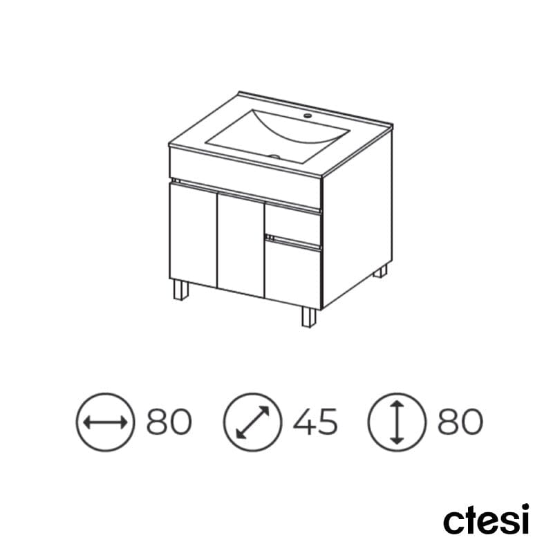 Este mueble de alta gama con patas es ideal para su baño. Con un ancho de 80 cm y un diseño moderno, le proporcionará un estilo elegante y funcional. Disfrute de la calidad y durabilidad de este mueble mientras organiza su baño de manera eficiente.