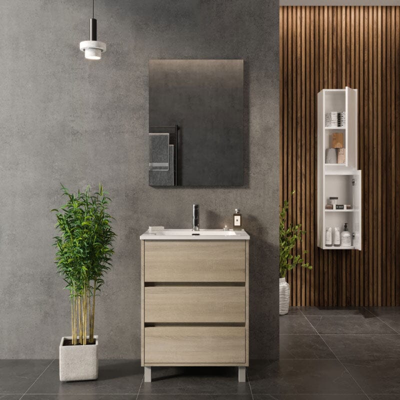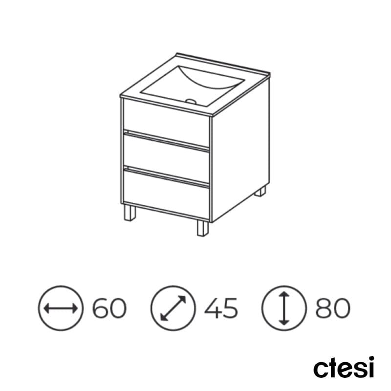 Este mueble de lavabo con patas ALCOA de alta gama ofrece un diseño elegante y funcionalidad de primer nivel. Con 60 cm de ancho, proporciona espacio suficiente para almacenar y organizar tus artículos de baño. Hecho con materiales de alta calidad, es una opción duradera y sofisticada para tu baño.