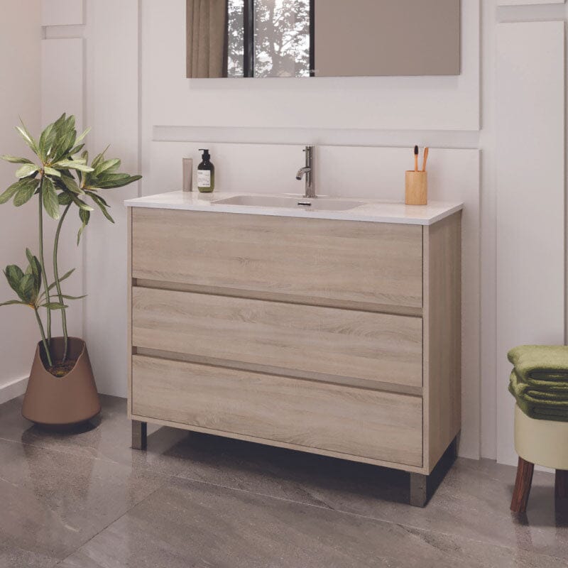 - Mueble con patas de alta gama, premontado en taller para una instalación simple y rápida