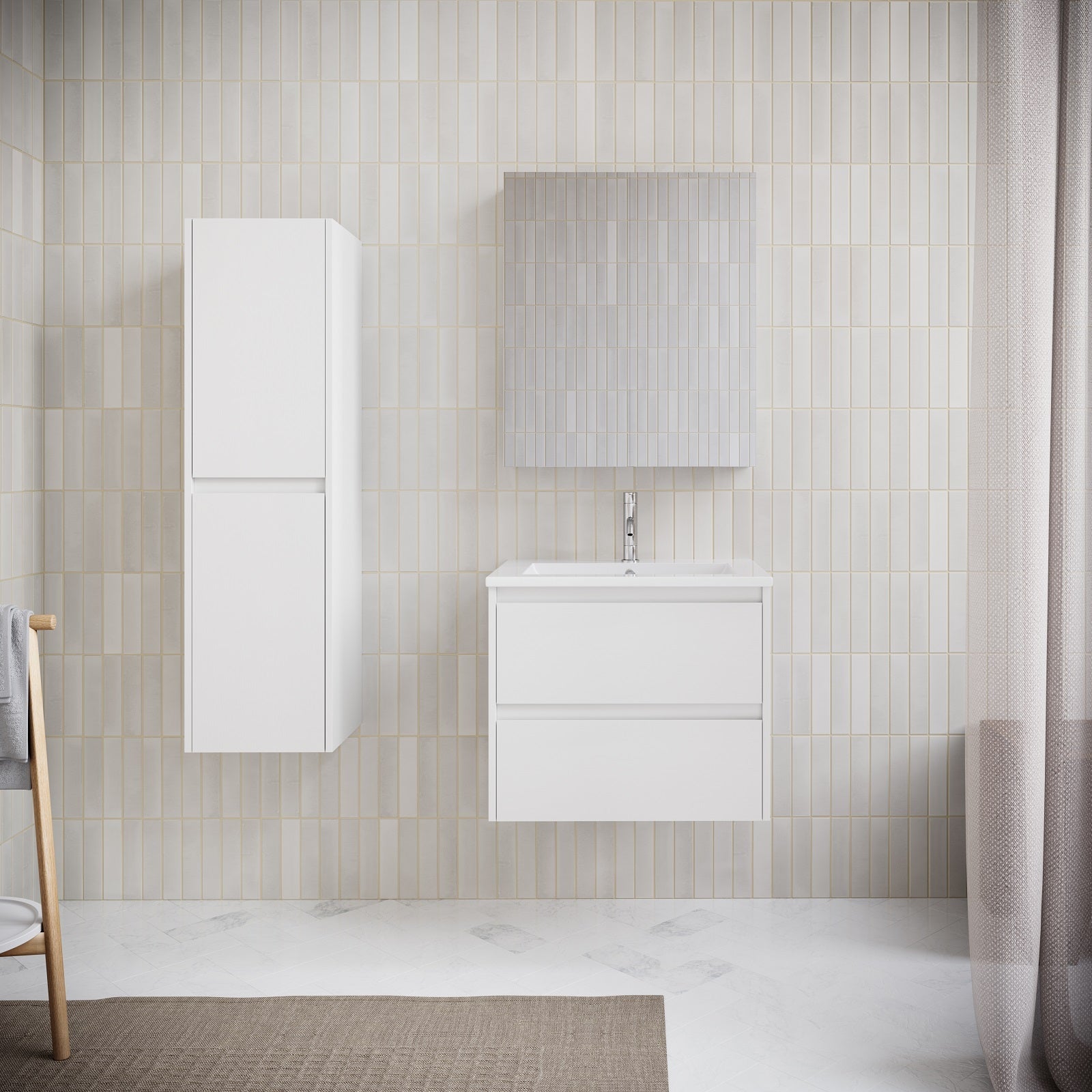 Mueble lavabo + lavabo 60 cm FORTINA blanco con un diseño moderno y minimalista. Mueble con kit de automontaje.