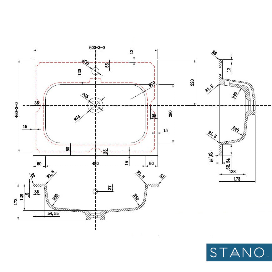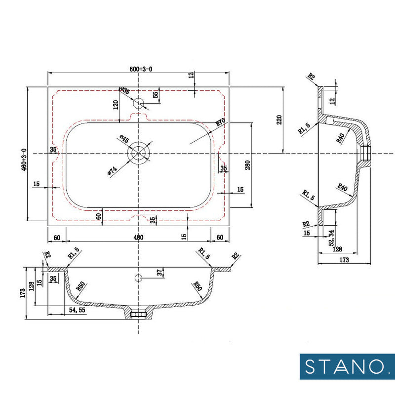 - Anchura del lavabo: 600 mm