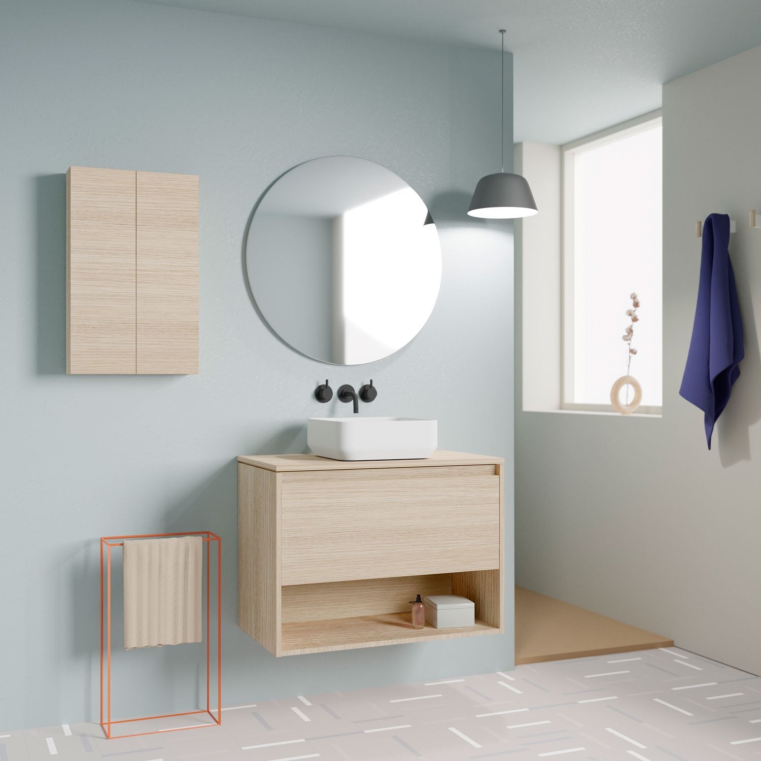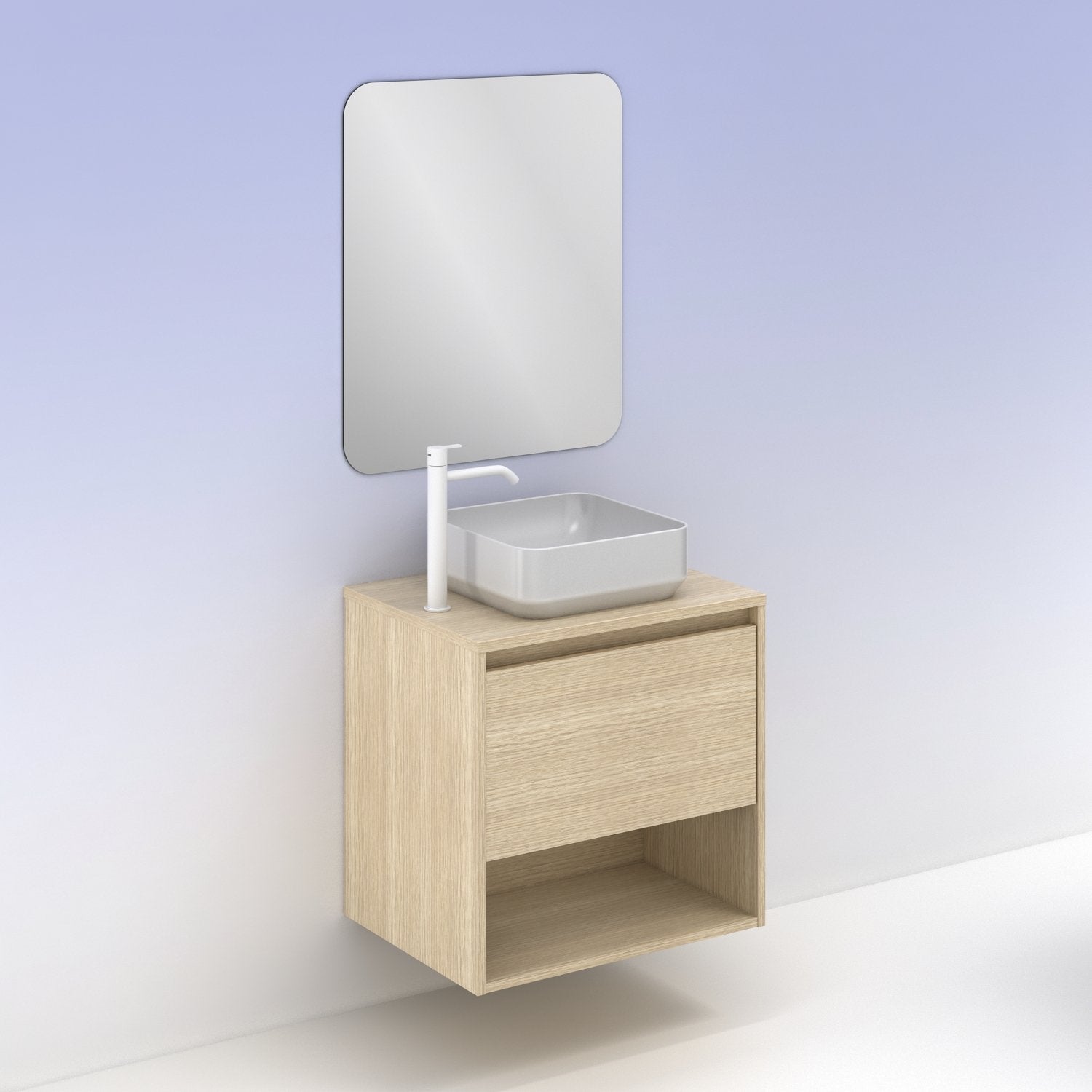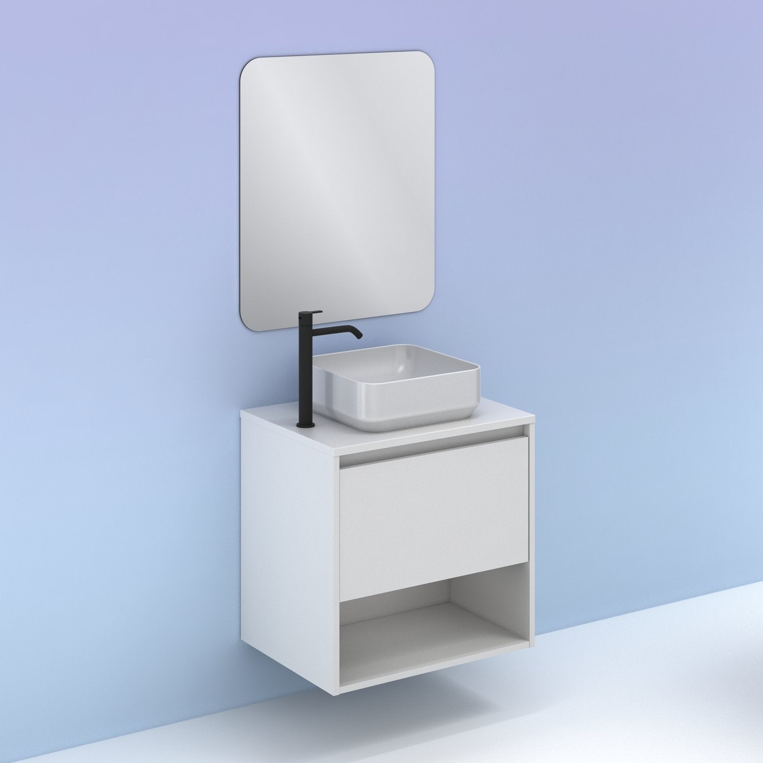 Sencillez, elegancia, versatilidad. El mueble de baño NIWA TOP esta compuesto por 3 elementos: 1 mueble con un cajón mas un estante, encimera lacada con agujero para el lavabo y lavabo cerámico. Una combinación perfecta para quienes quieran contar con un cuarto de baño acorde a las últimas tendencias.