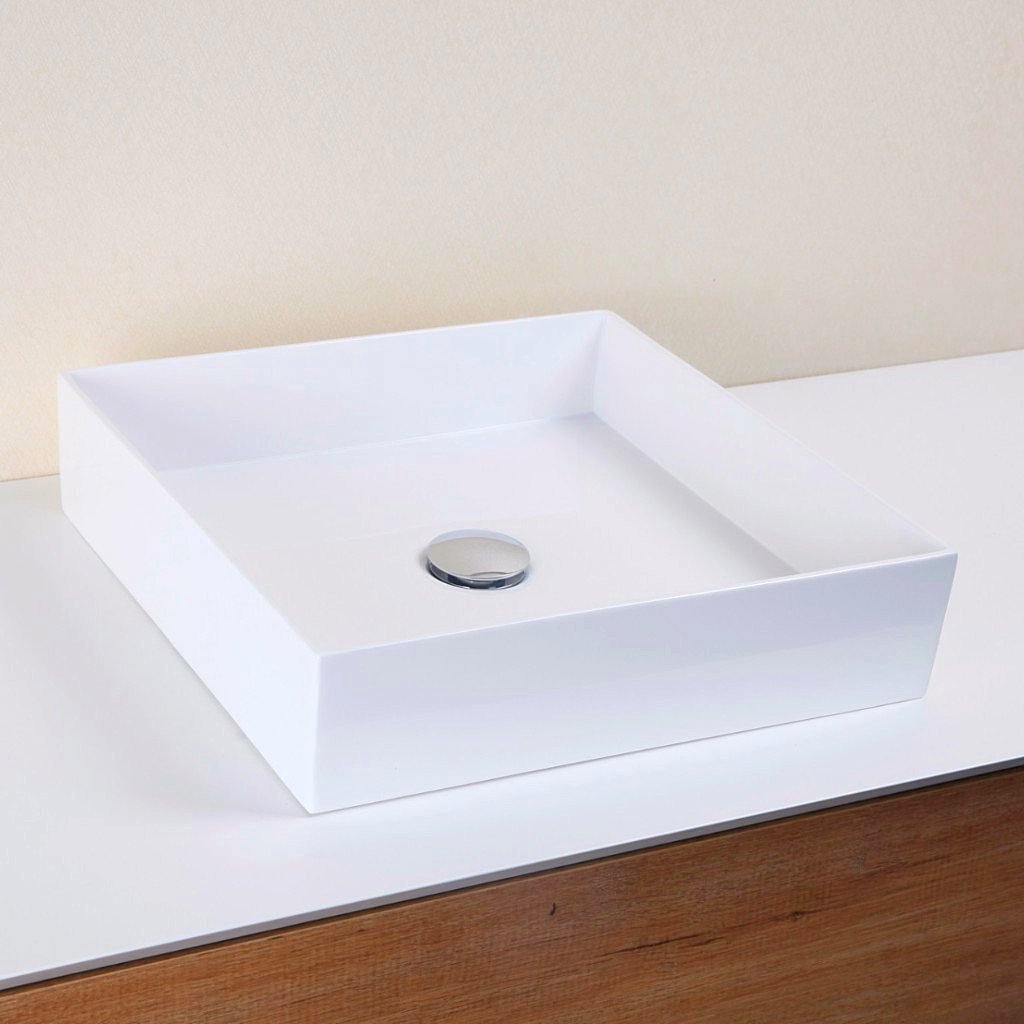 Lavabo sobre encimera STANO cuadrado de diseño contemporáneo de la colección SIENA de mármol cultivado. Este material se define por ser mas resistente que la cerámica, ofrece líneas mas minimalistas y su brillo satinado le da una elegancia notable. Garantía: 5 años