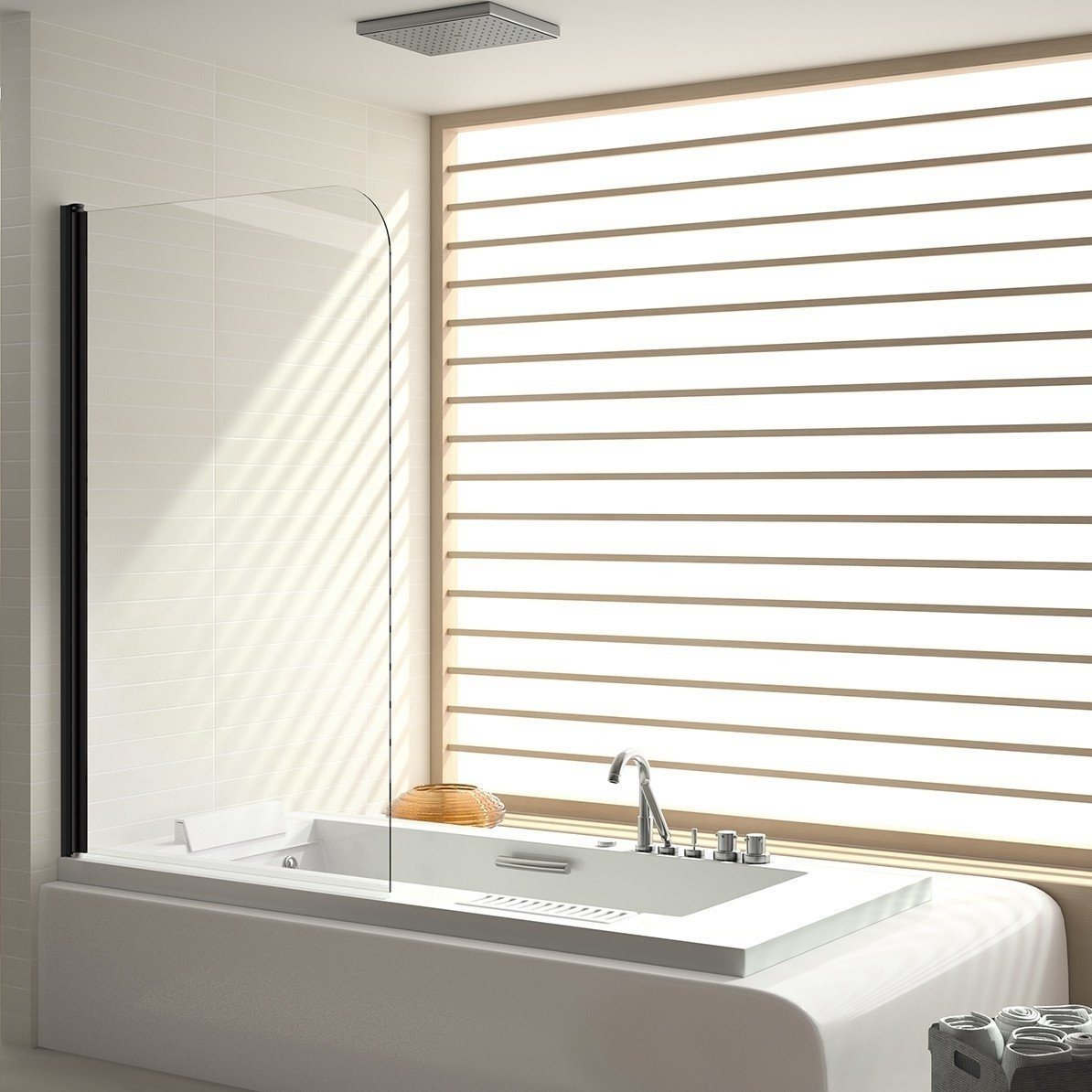 Mampara de bañera abatible transparente para bañera de diseño en vidrio templado, modelo RITA, con perfil negro mate.
