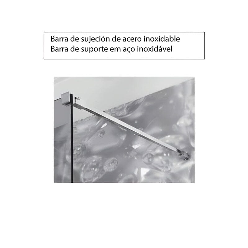 La elegancia que combinan el panel fijo, el perfil y la barra de sujeción se une a la comodidad de la ausencia de puertas, generando una sensación de amplitud en la estancia.