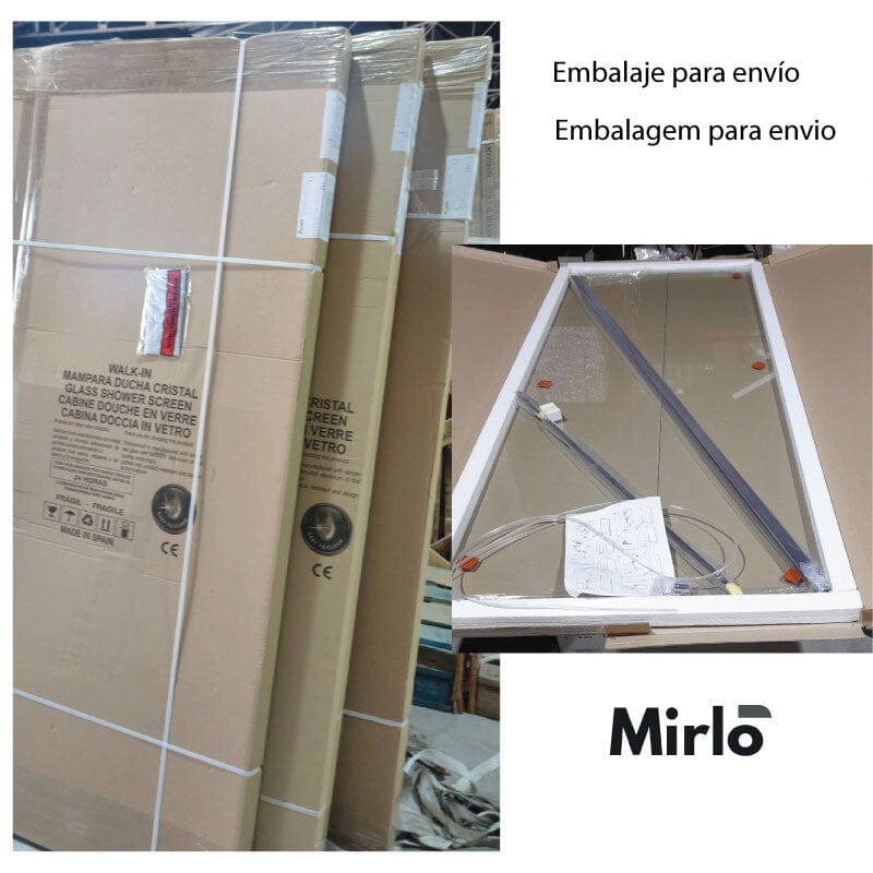 Nuestros envíos se realizan siempre por transporte terrestre. Sus productos se embalan en una caja de cartón reforzado y, en el caso de bañeras o platos de ducha, se dejan sobre un palet. Nuestras mamparas de ducha van en una caja de cartón de alta calidad para el transporte de cristal.
