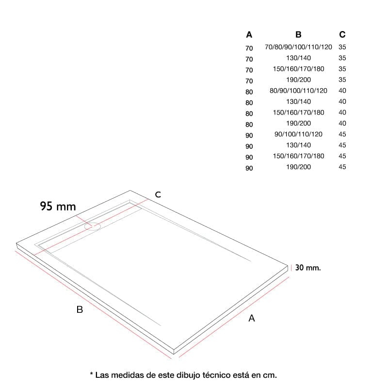 - Existe una zona de 5 cm. alrededor donde no tiene caída, para poder instalar una mampara sin problemas de ajuste.