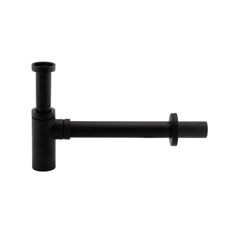 Sifón para lavabo de latón, acabado negro mate para lavabos, fregaderos y encimeras.
