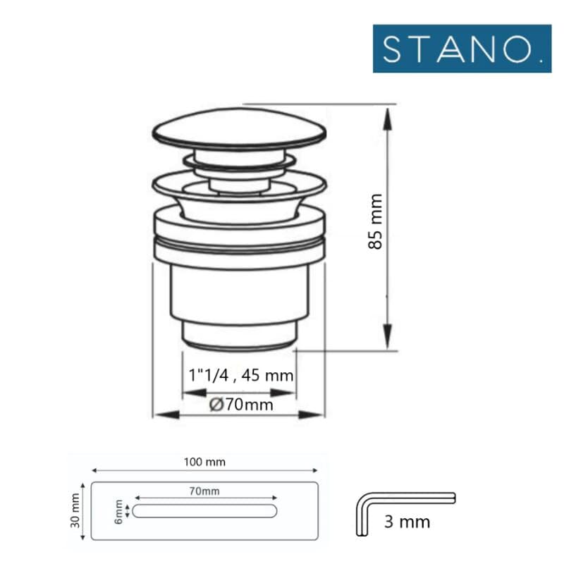- Volumen de entrega: válvula de desagüe de bañera click-clack y tapa de rebosadero rectangular