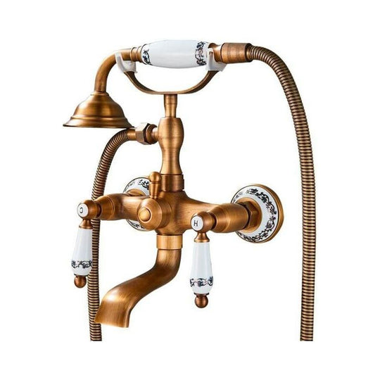 Torneira retrô duplo comando de parede para banheira autônoma modelo FLORINA em DOURADO ENVELHECIDO
