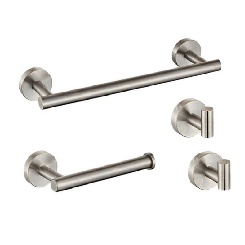 - Inclui: Toalheiro de 30 cm (30 cm externo, 35 cm interno) + Porta-rolo de papel higiênico + 1, 2 ou 3 cabides (conforme escolha)